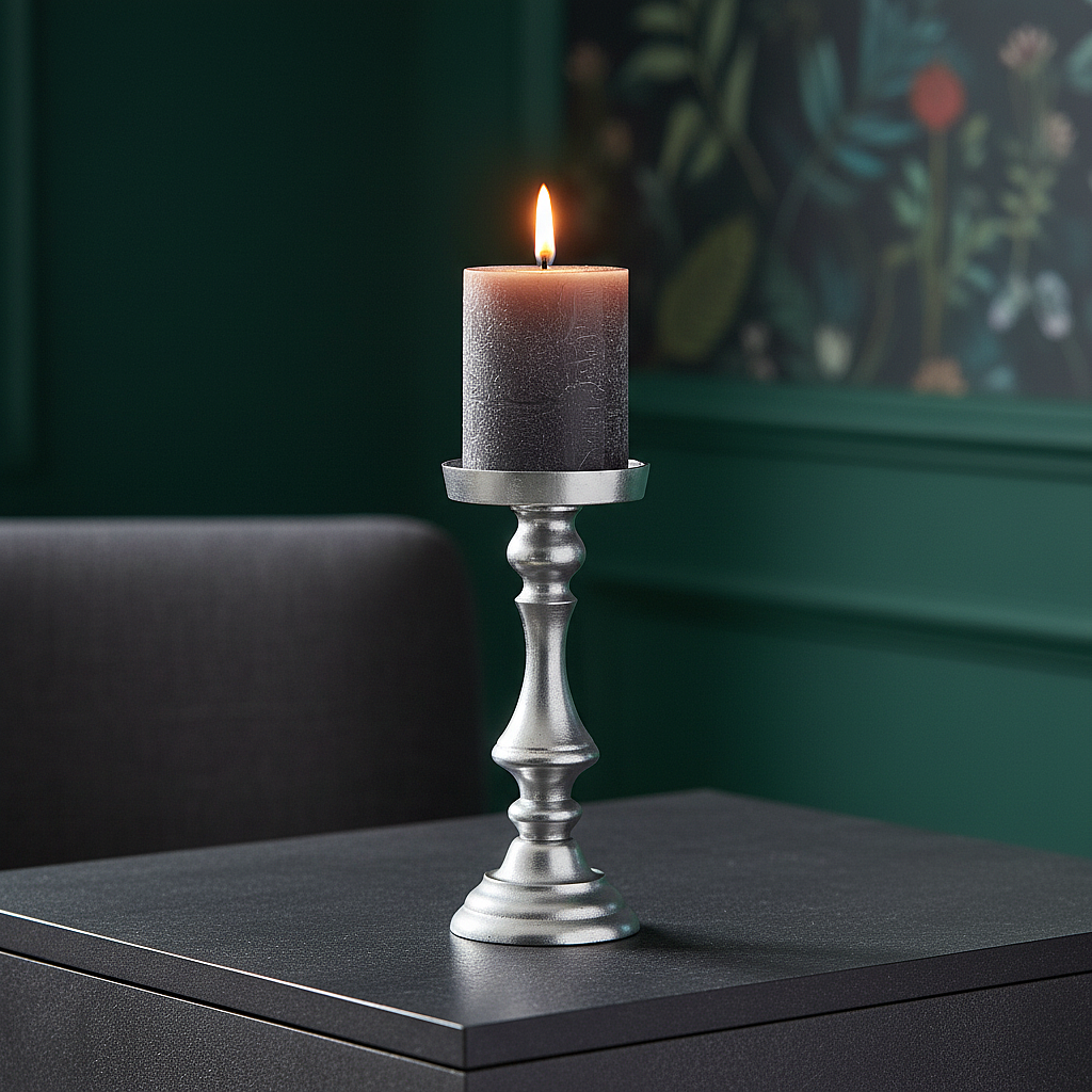 Bougeoir Chandelier 5 têtes en Métal Argent H 27 cm