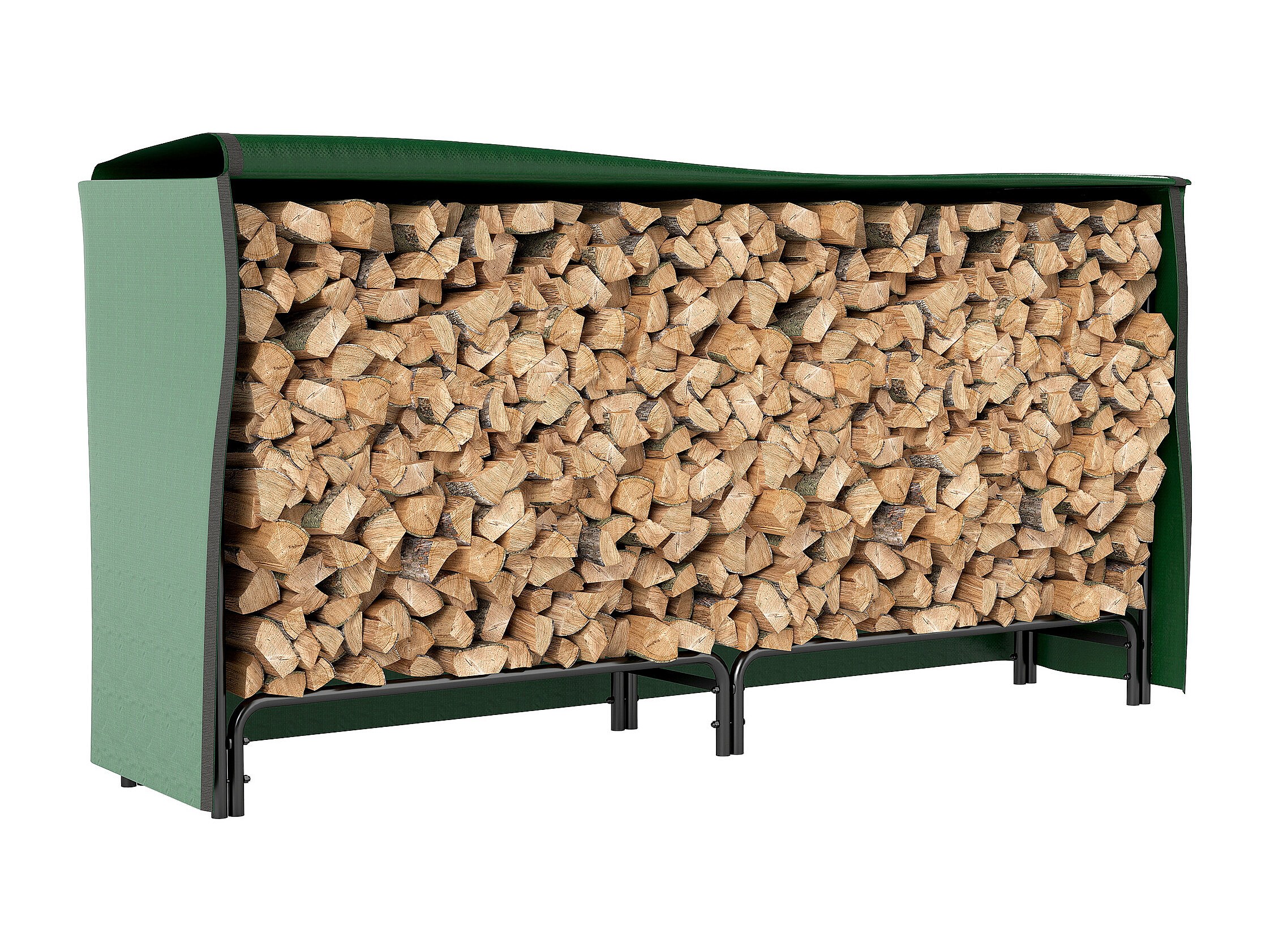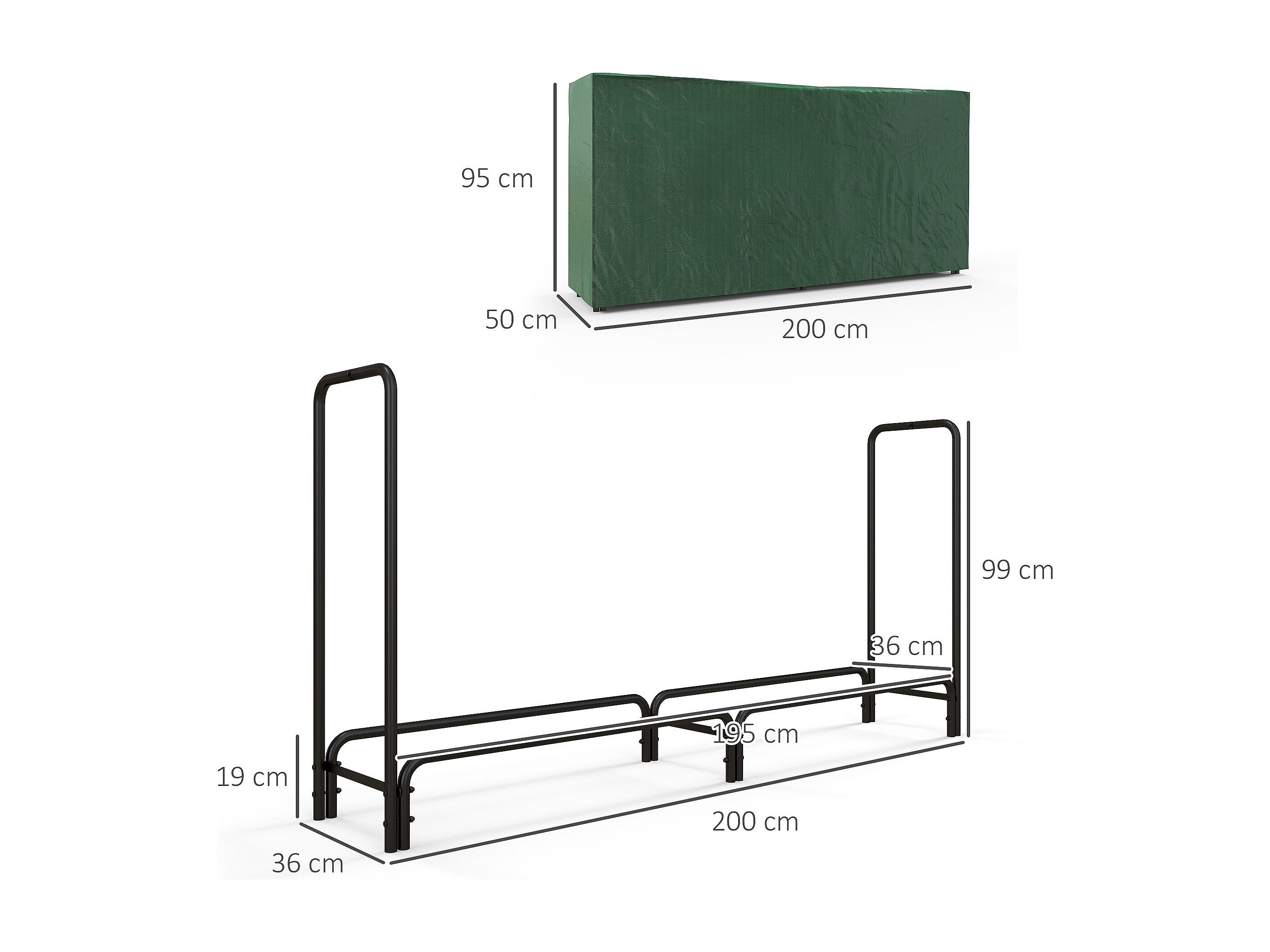 Porte-bûches - range-bûches - dim. 200L x 36l x 99H cm - housse incluse verte - métal noir