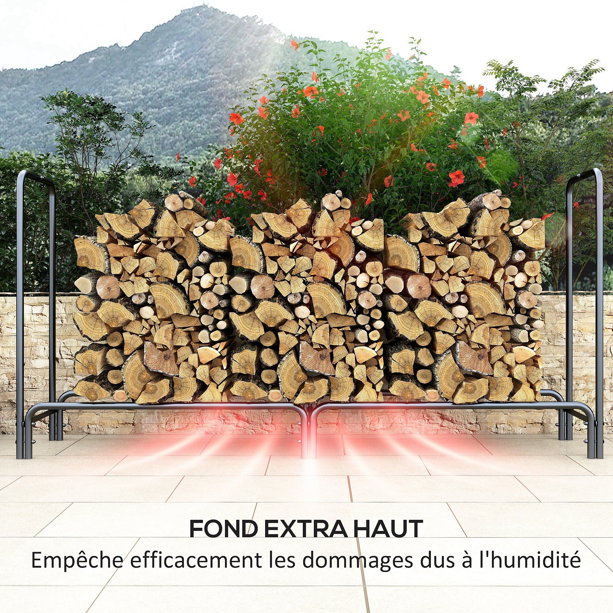 Range-bûches intérieur extérieur sur pied - 2 compartiments 3 crochets - dim. 123L x 32l x 115H cm - acier noir