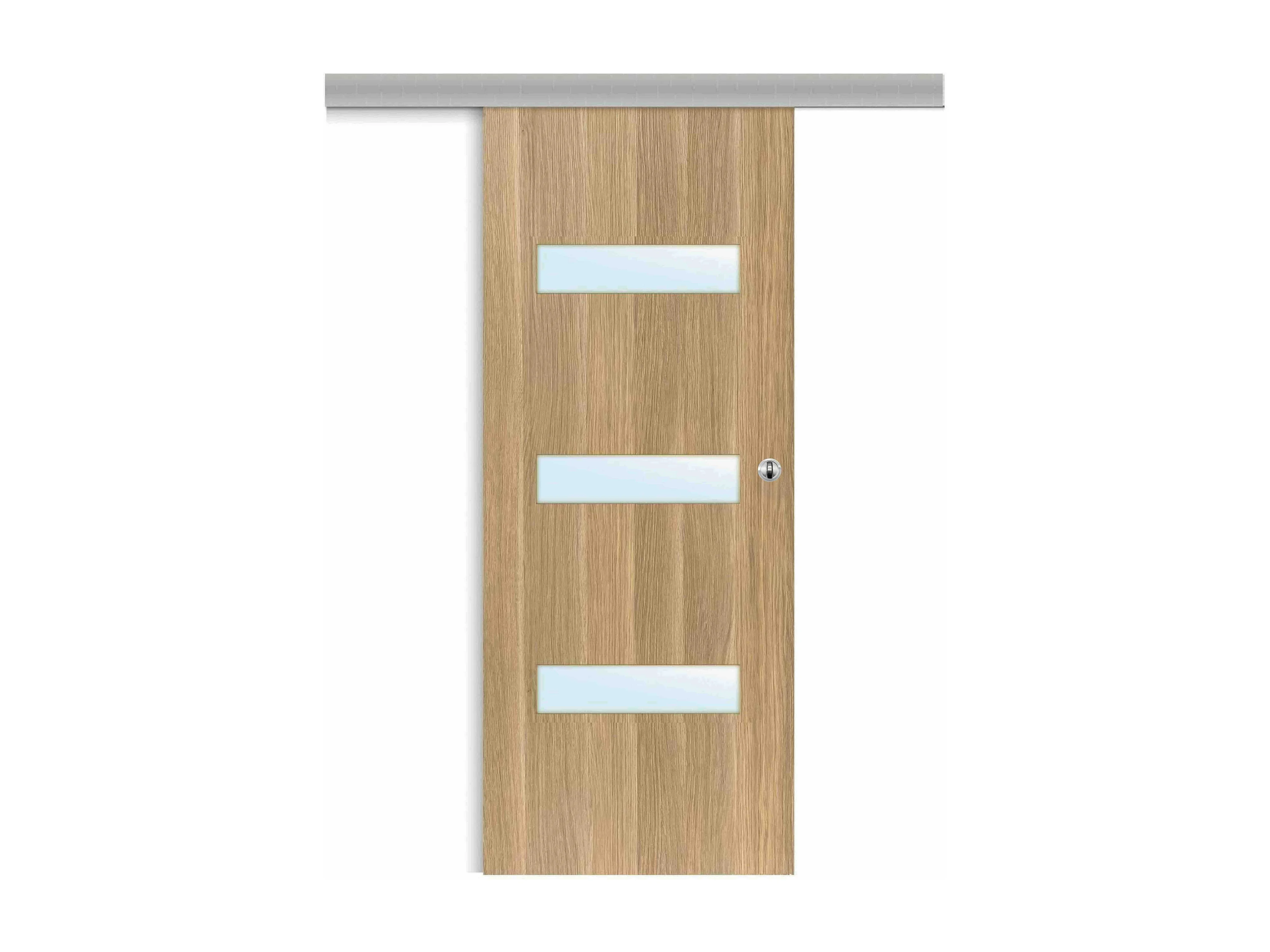 Porte coulissante applique April 83 cm avec crochet rond condamnation chromé