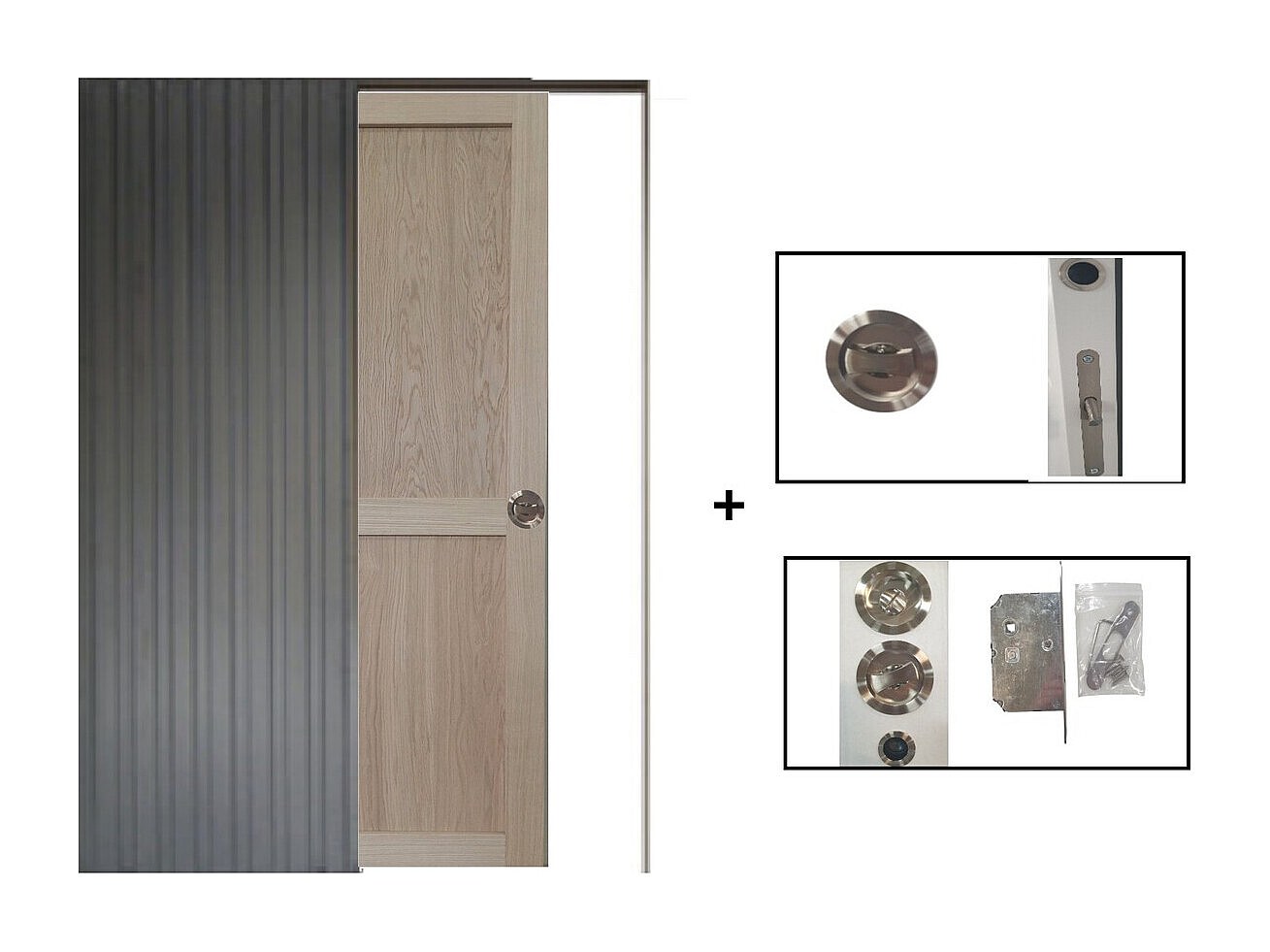 Porte Coulissante Atelier 2 Panneaux Chene H204 X L83 + Système à Galandage (sans Kit Finition) Gd Menuiseries