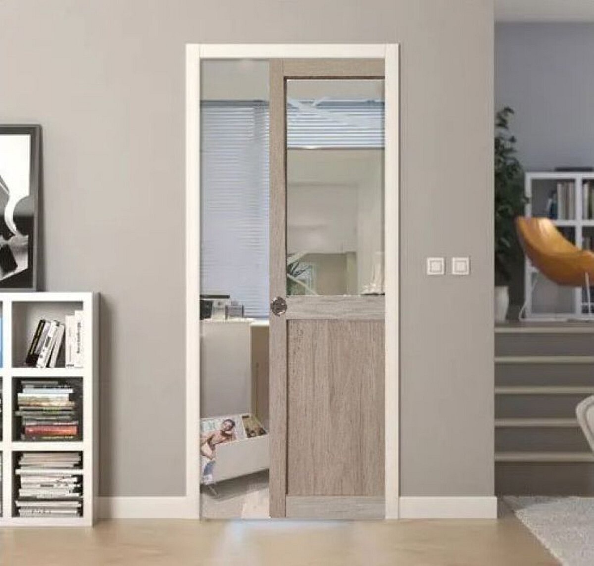 Porte Coulissante Atelier Placage Chene Vitree H204 X L73 + Systeme Galandage Et Kit Finition Inclus Gd Menuiseries
