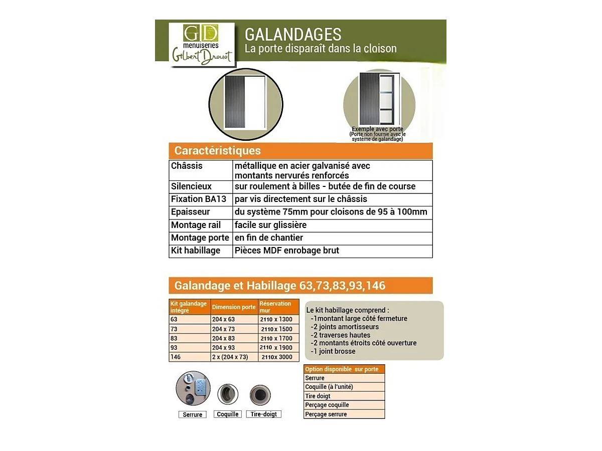 Porte Coulissante Athena Ral7035 2 Panneaux H204 X L83 + Systeme A Galandage (sans Kit Finition) Gd Menuiseries