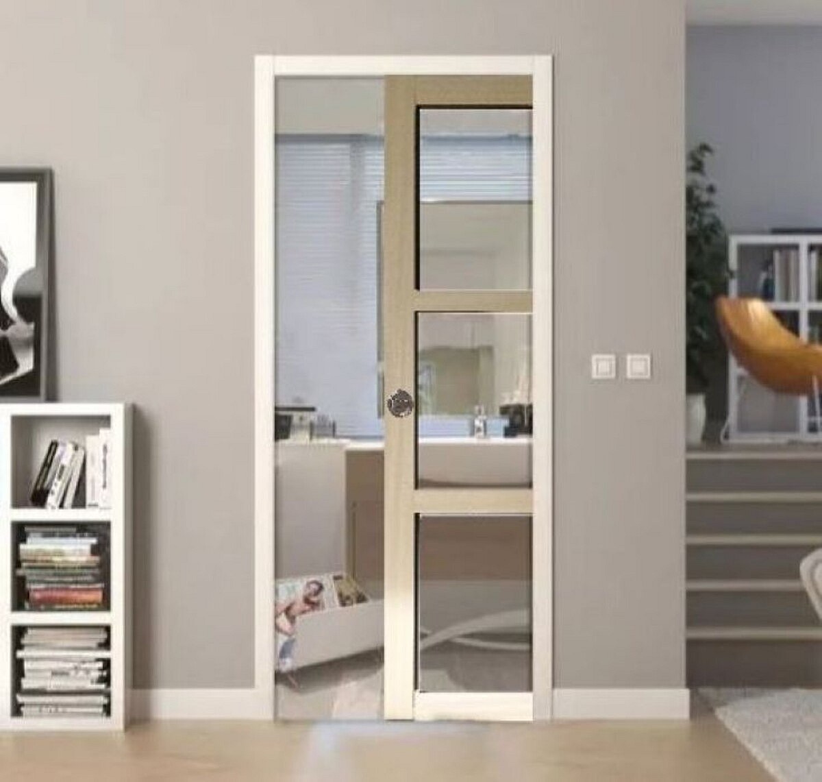 Porte Coulissante Bois Ayous Vitrage Transparent H204 X L73 + Systeme A Galandage Et Kit Finition Inclus Gd Menuiseries