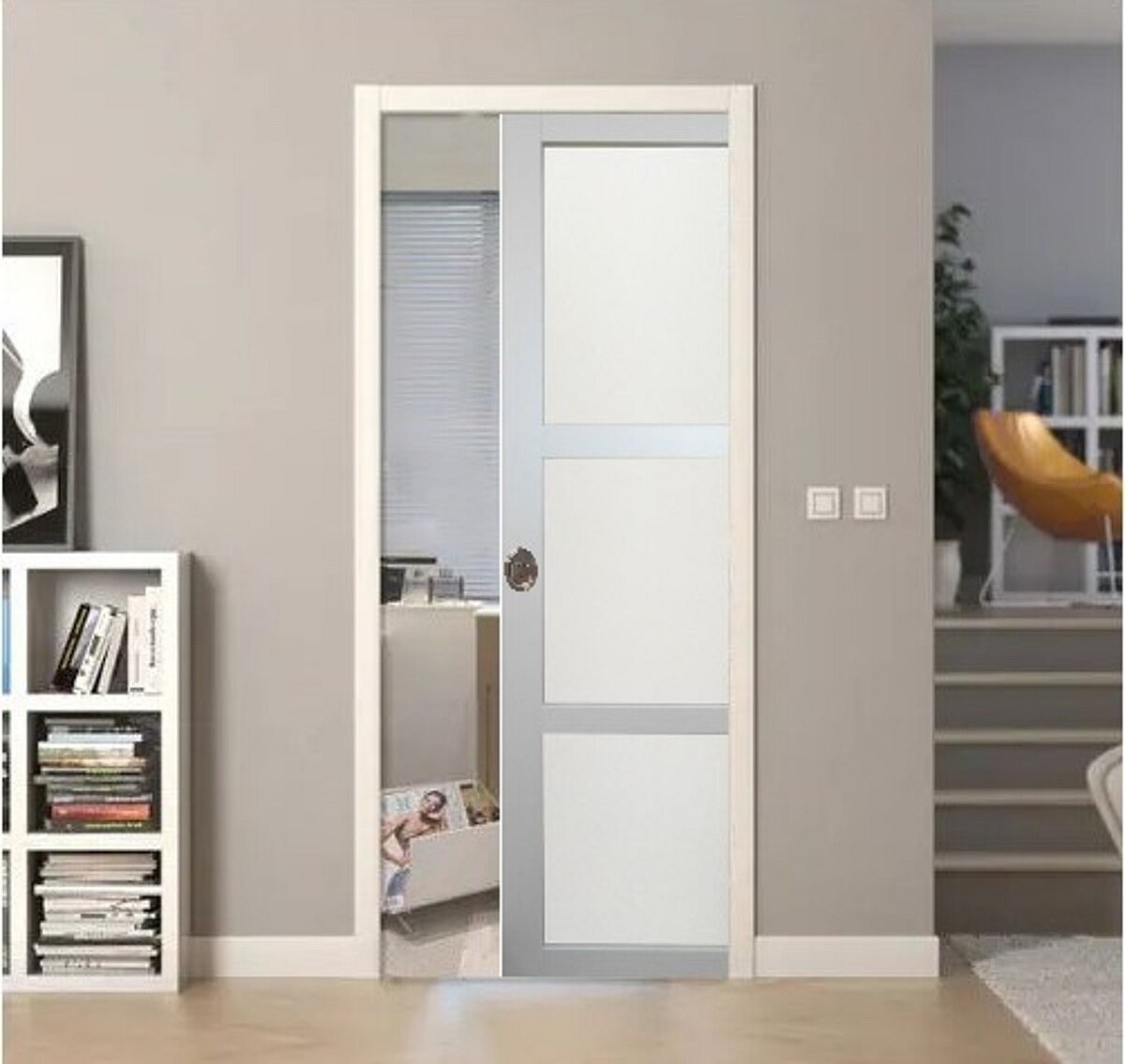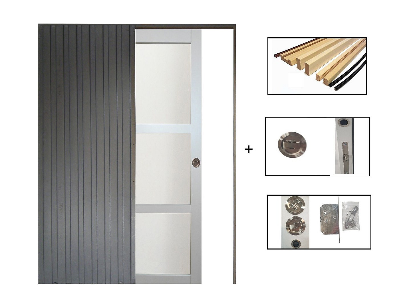 Porte Coulissante Greyria Gris Clair Ral7035 Vitree H204 X L73 + Systeme De Galandage Et Kit De Finition Inclus Gd Menuiseries