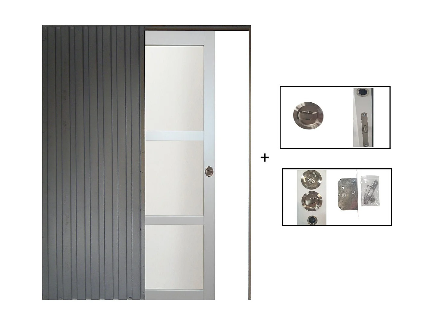 Porte Coulissante Greyria Gris Clair Ral7035 Vitree H204 X L93 + Systeme A Galandage (sans Kit Finition) Gd Menuiseries