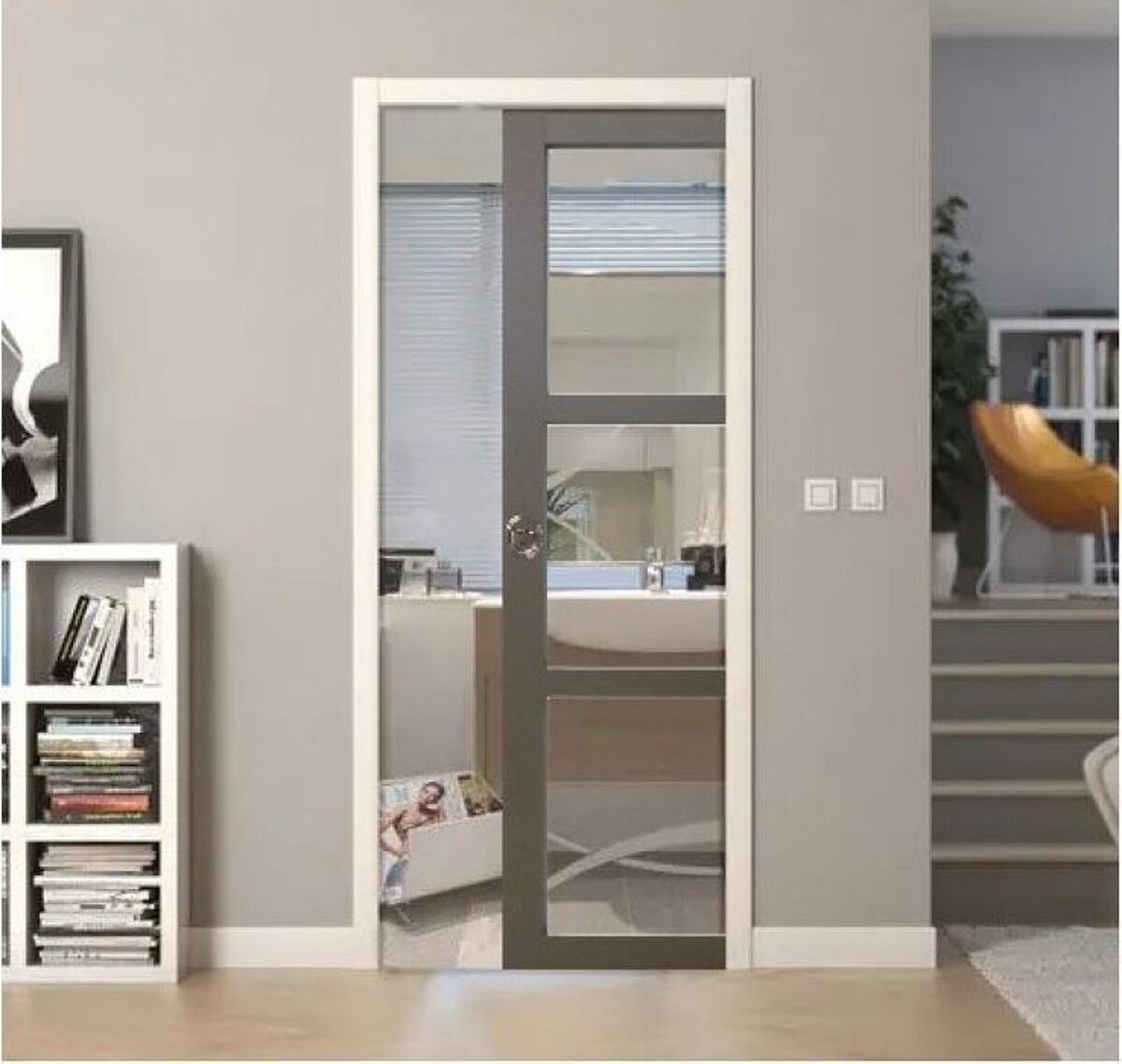 Porte Coulissante Marron Ral7006 Vitrage Transparent H204 X L83 + Systeme Galandage Et Kit De Finitions Inclus Gd Menuiseries