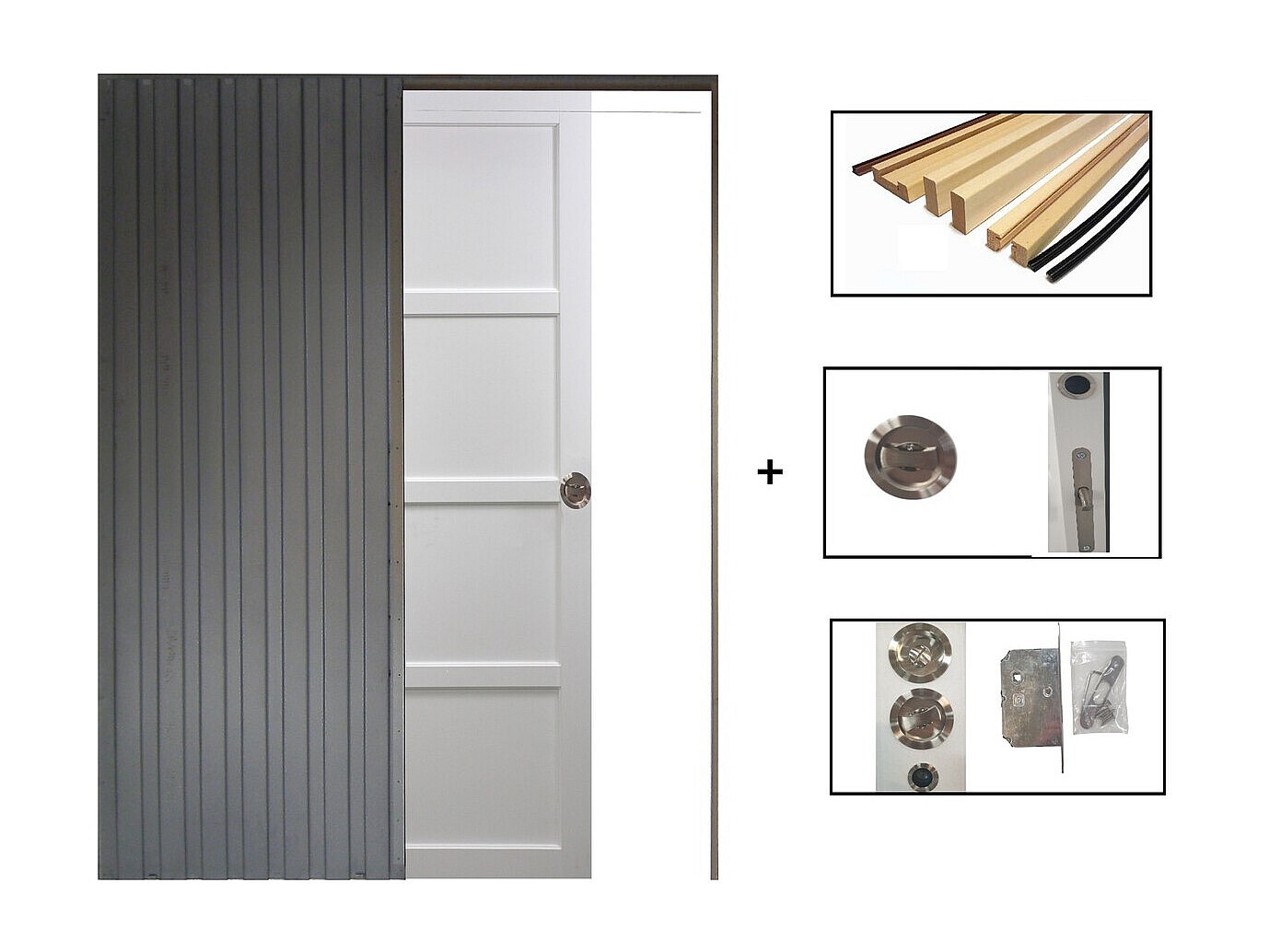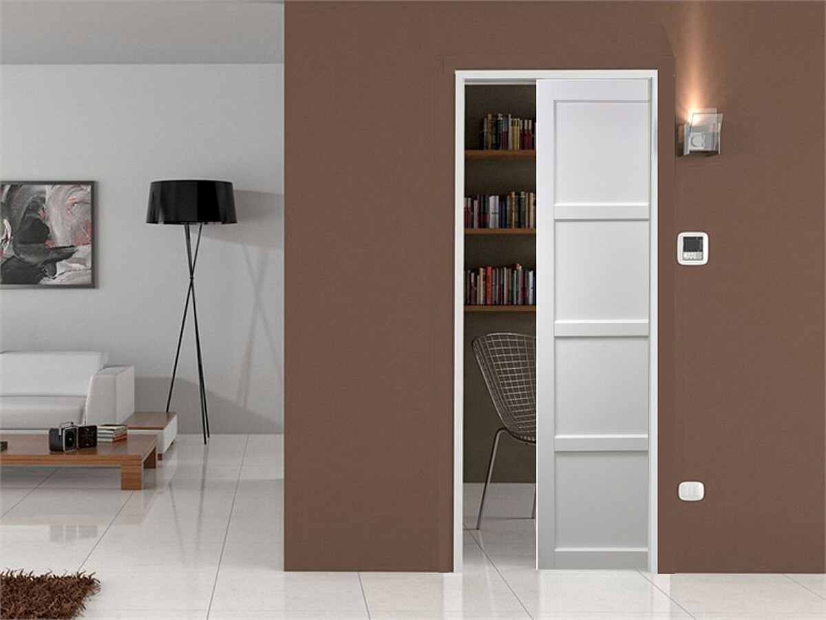 Porte Coulissante Tamera Blanc 4 Panneaux H204 X L73 + Systeme De Galandage Et Kit Finition Inclus Gd Menuiseries