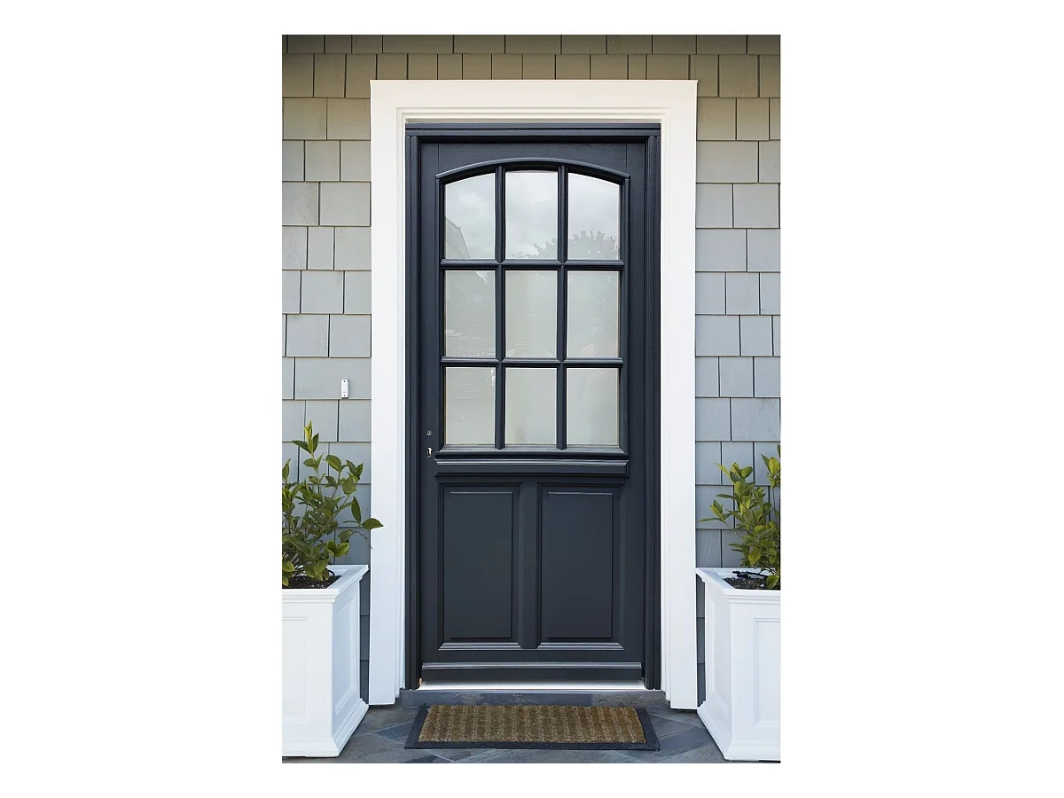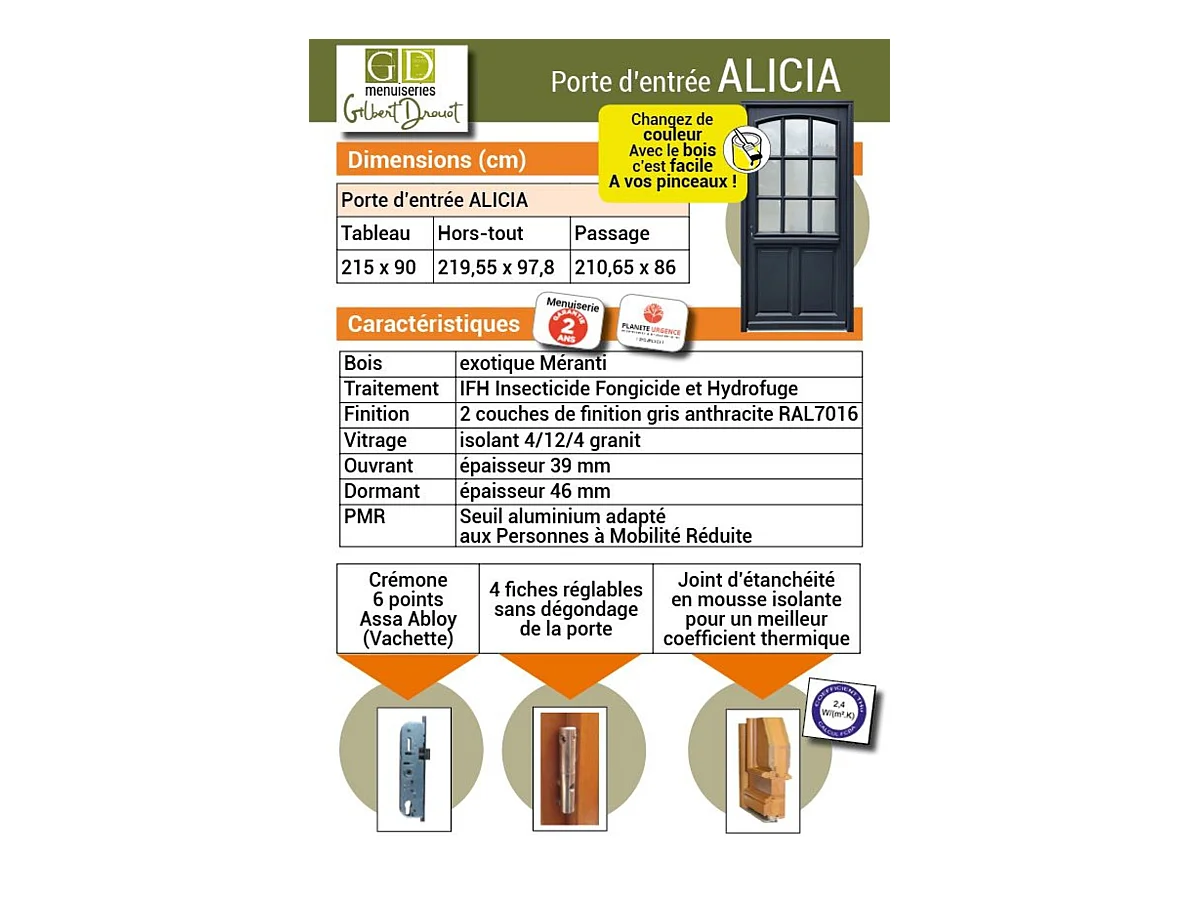 Porte d'entree Bois vitree, Alicia, gris RAL7016, H,215xl,90 p, droit Cote Tableau + Poignee Et Barillet( ref 010723NO)