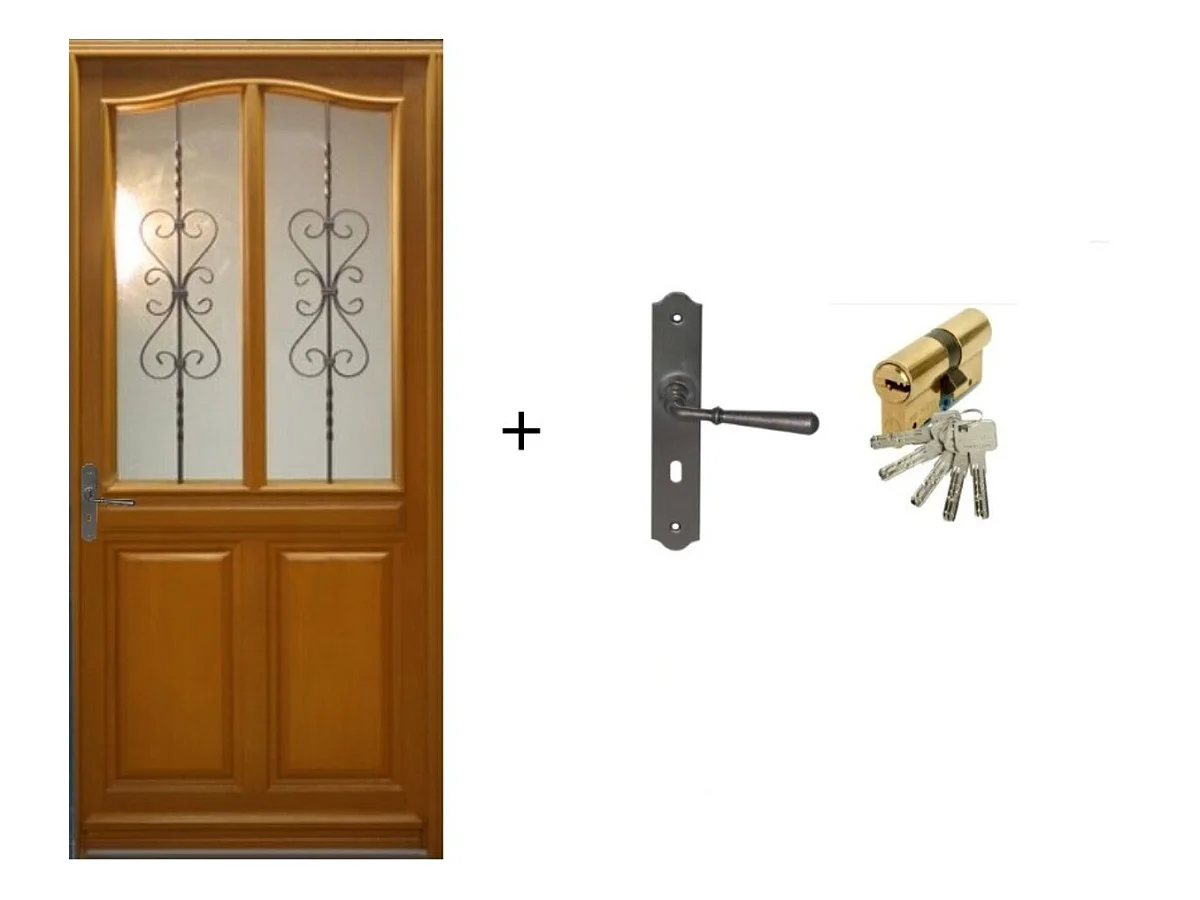 Porte d'entree Bois vitree, Sandy, H,215xl,90 p, droite Cote Tableau + Poignee Et Barillet (ref 010403FP)