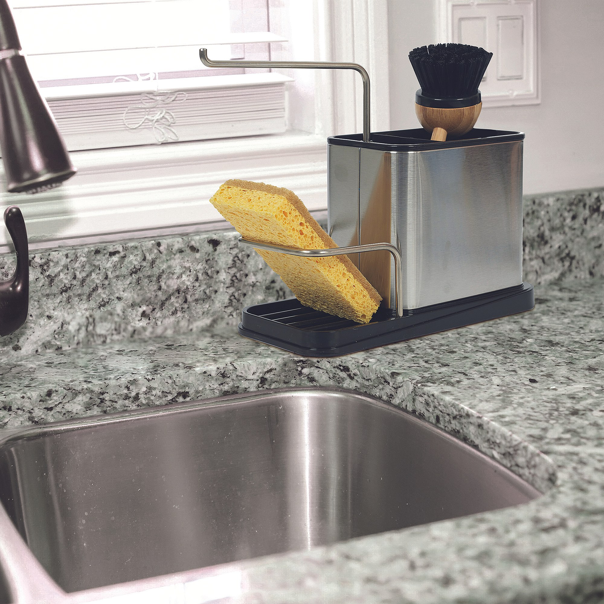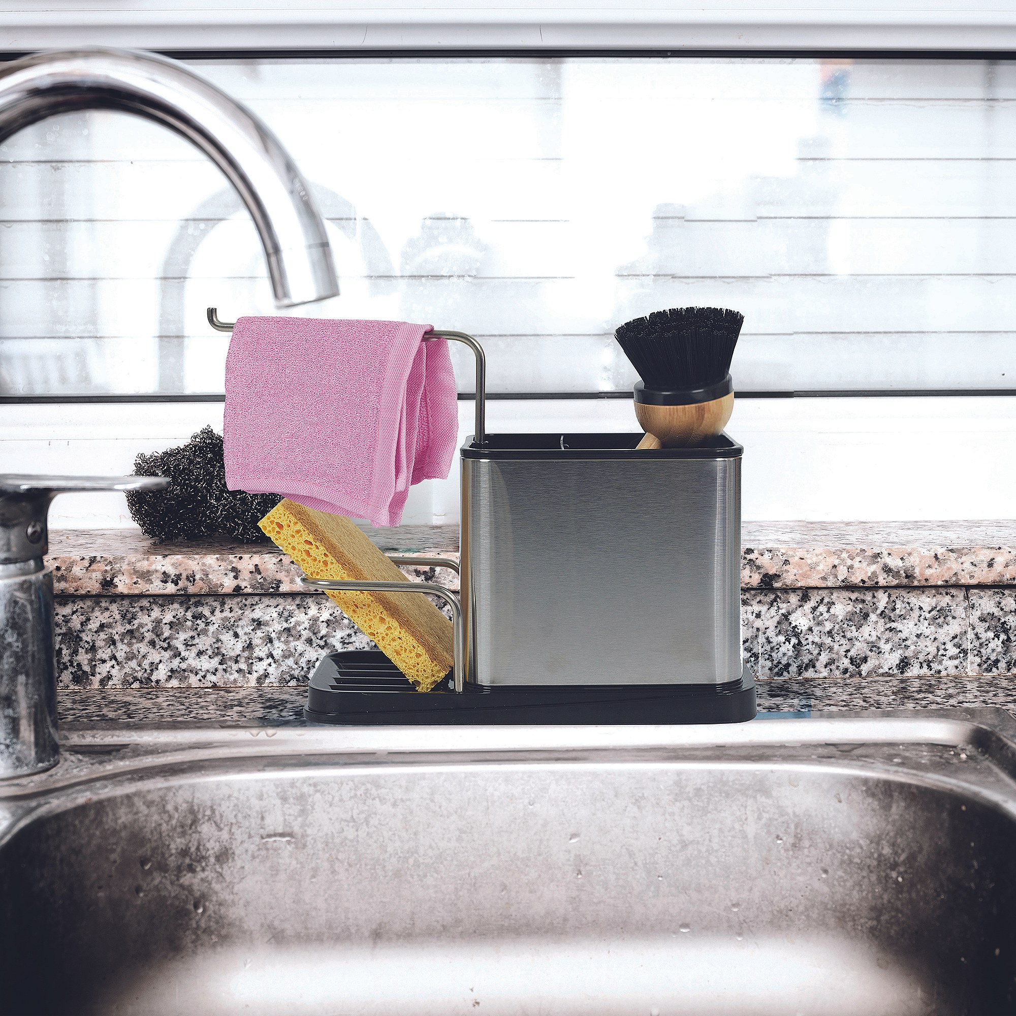 Porte Eponge Et Brosse Inox 22x10x13cm Argent, Noir