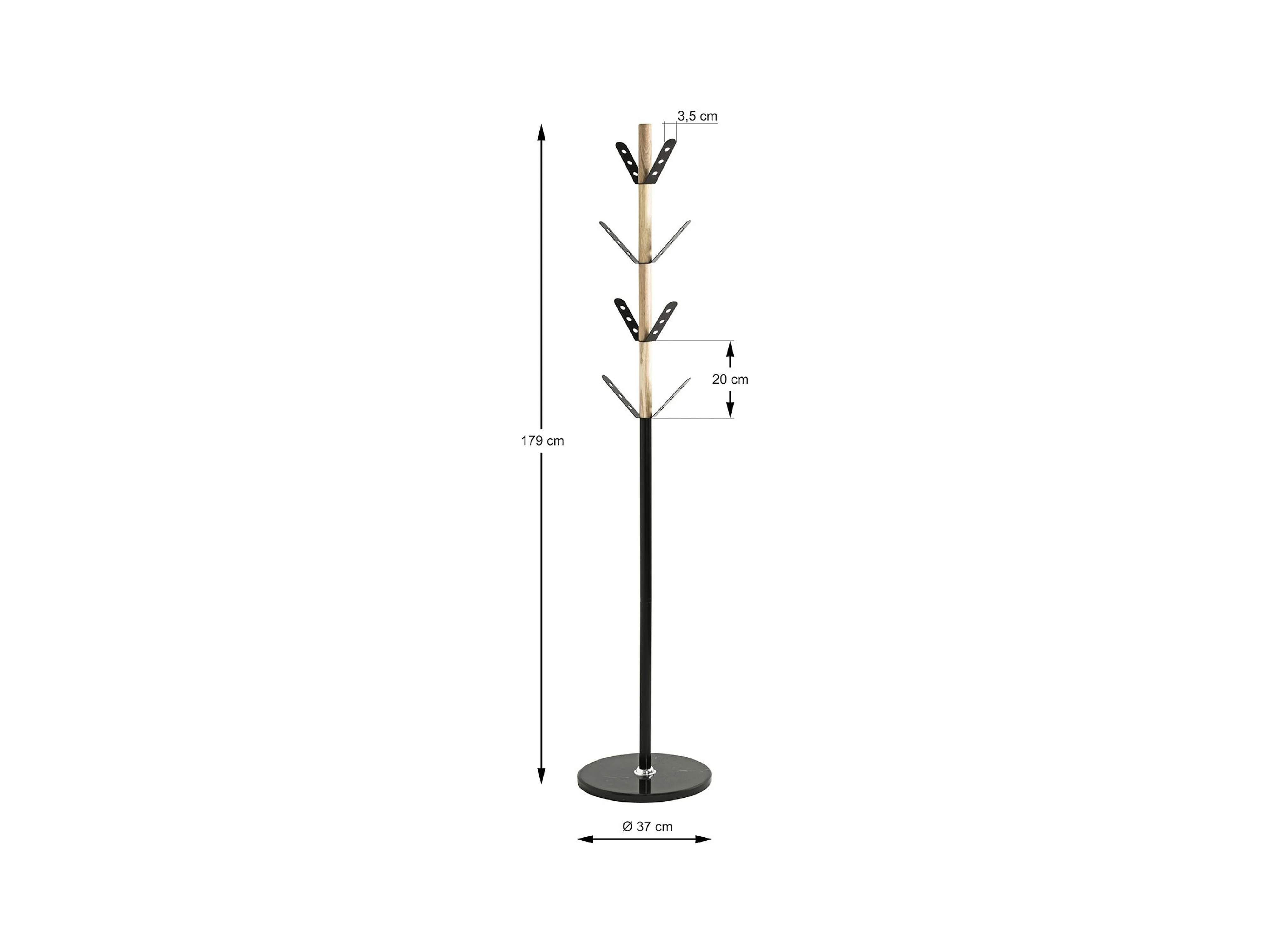 Porte-manteau avec 8 crochets, socle en marbre coloris noir - Hauteur 179 x Diamètre 37 cm