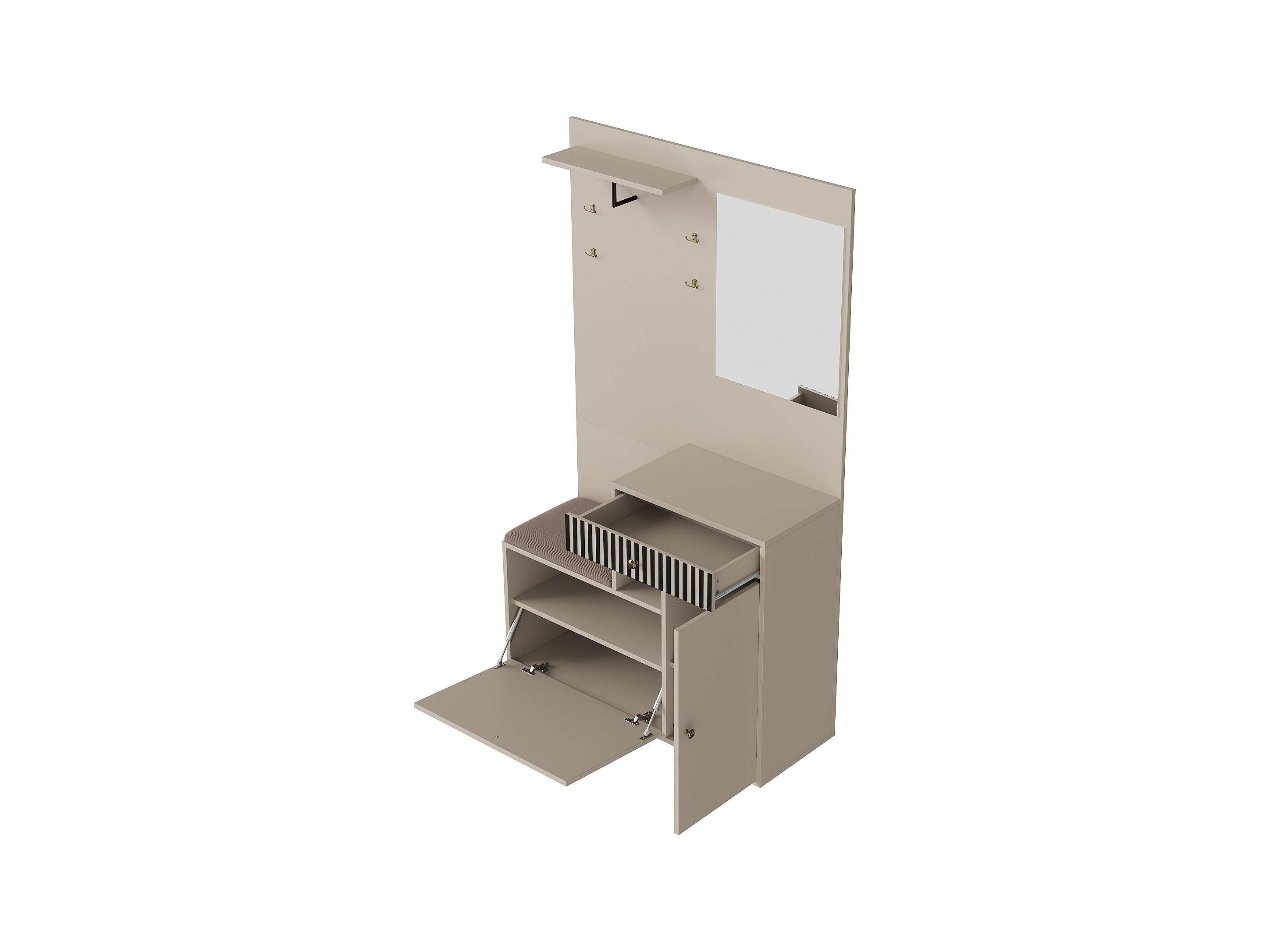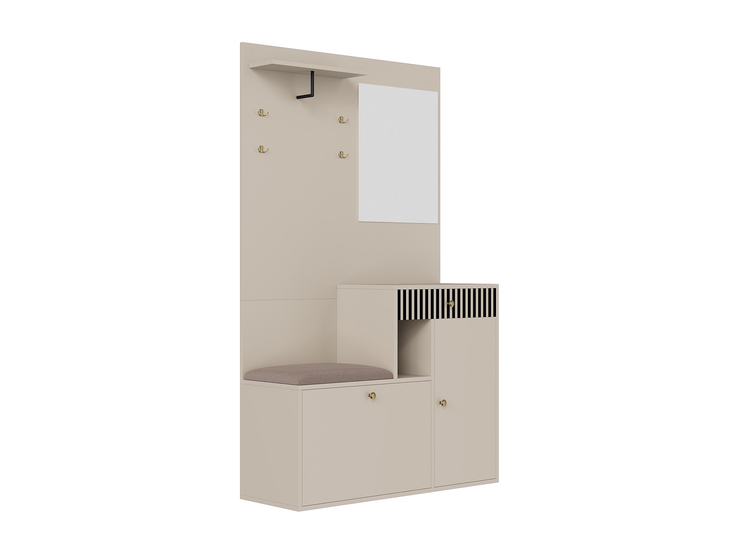 Porte-manteau d'entrée avec banc à chaussures et miroir, espace de rangement - Beige Gris