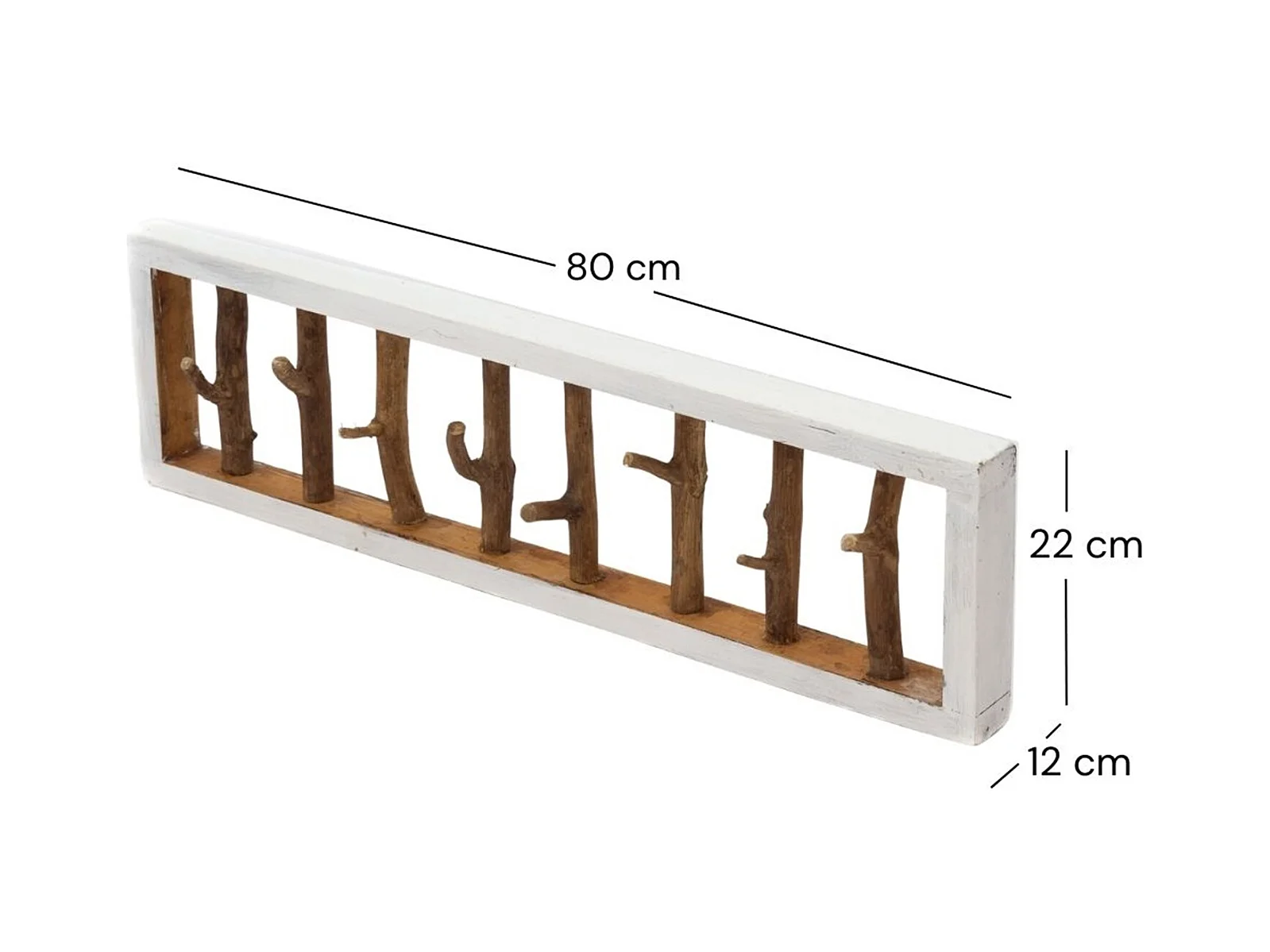 PORTE-MANTEAU MURAL TREIBHOLZ UNIKAT 80 Bois de recyclage massif, 8 patères 05 weiß-natur