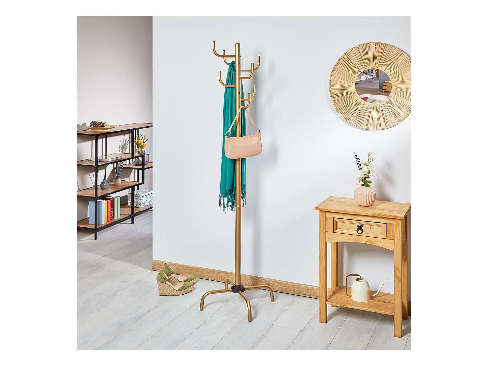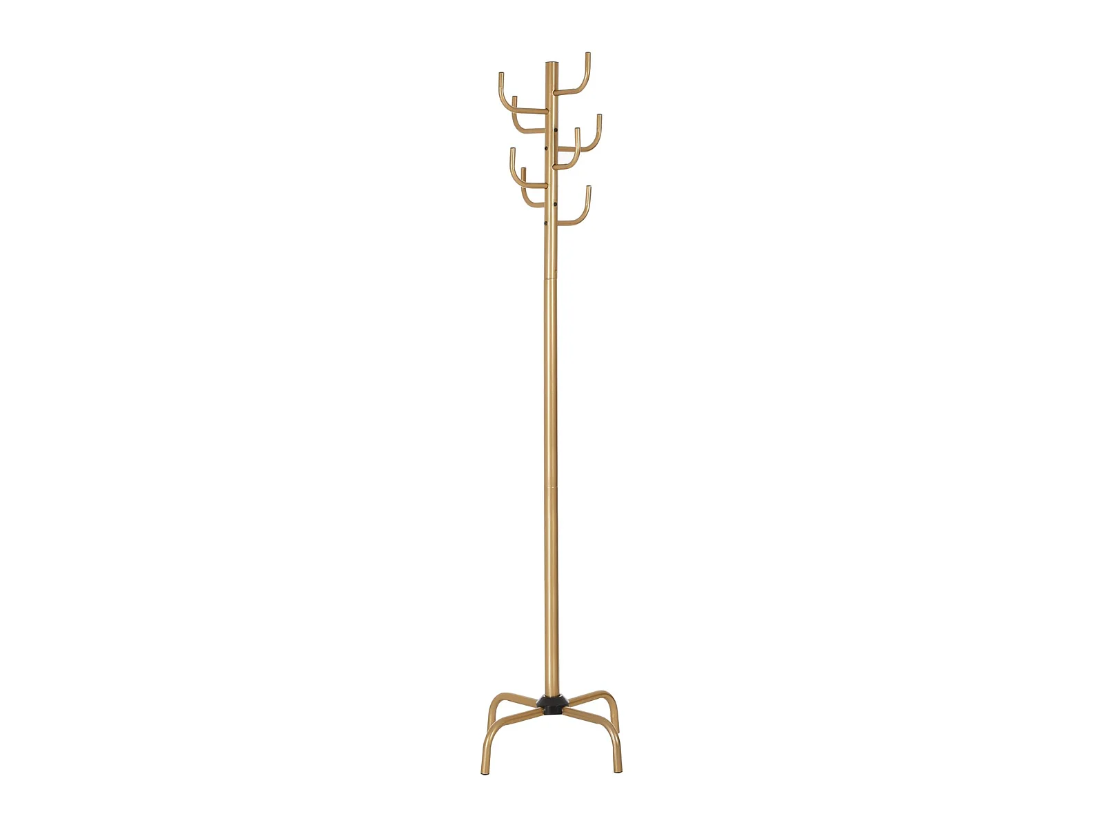 Porte-manteaux ZENO portant à vêtements sur pied en forme d'arbre avec 6 crochets sur différentes hauteurs, en métal laqué doré