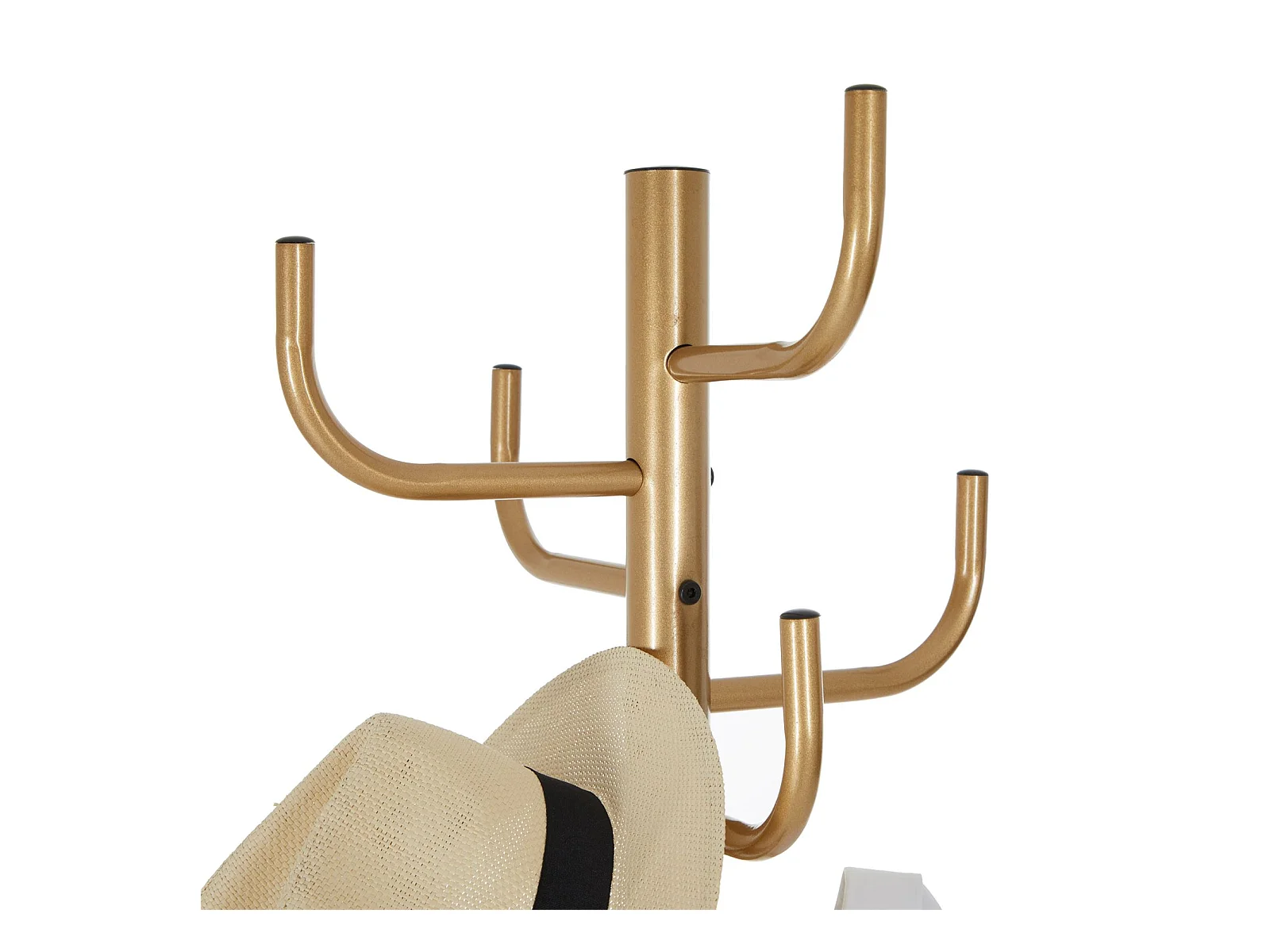 Porte-manteaux perroquet KAKTUS avec 8 portants crochets de hauteur différente, structure en métal laqué or
