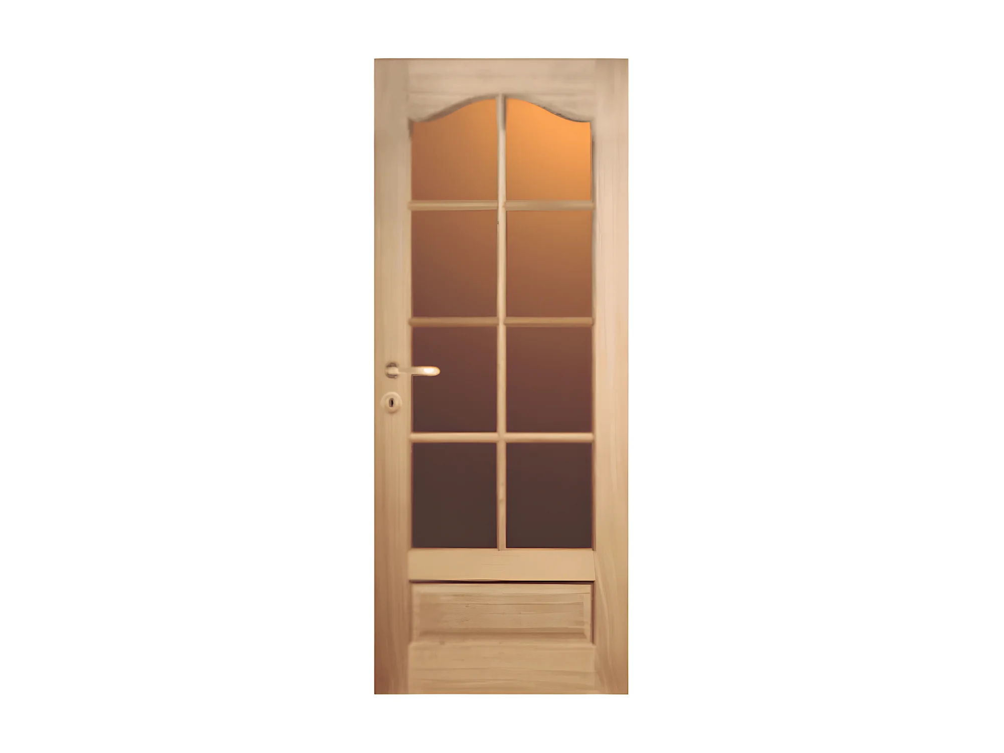 Porte nue, sans cadre, bois Bouleau : 8 carreaux, Chapeau de gendarme, 83 cm en rive droite
