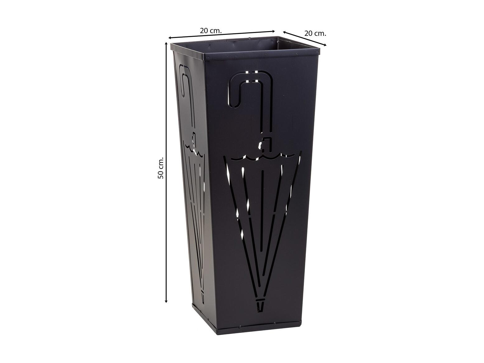Porte-parapluie carré en métal noir 20x20x50h cm