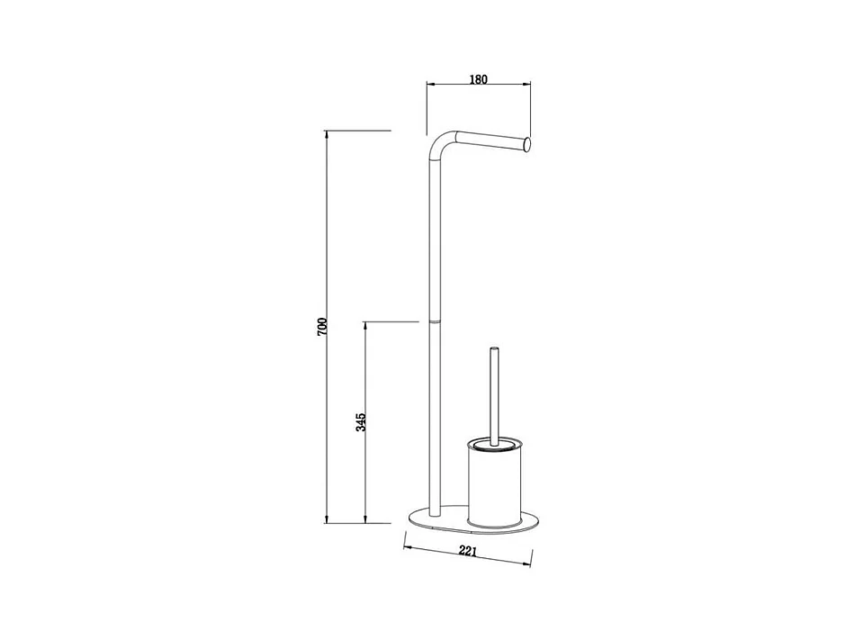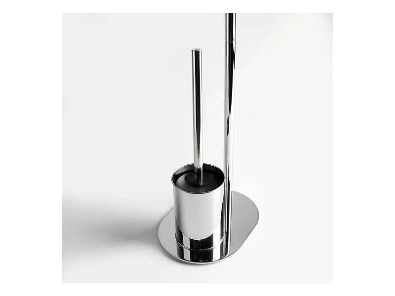 Porte-rouleau de papier toilette sur pied "Tobias" avec porte-balai en métal chromé et base ovale