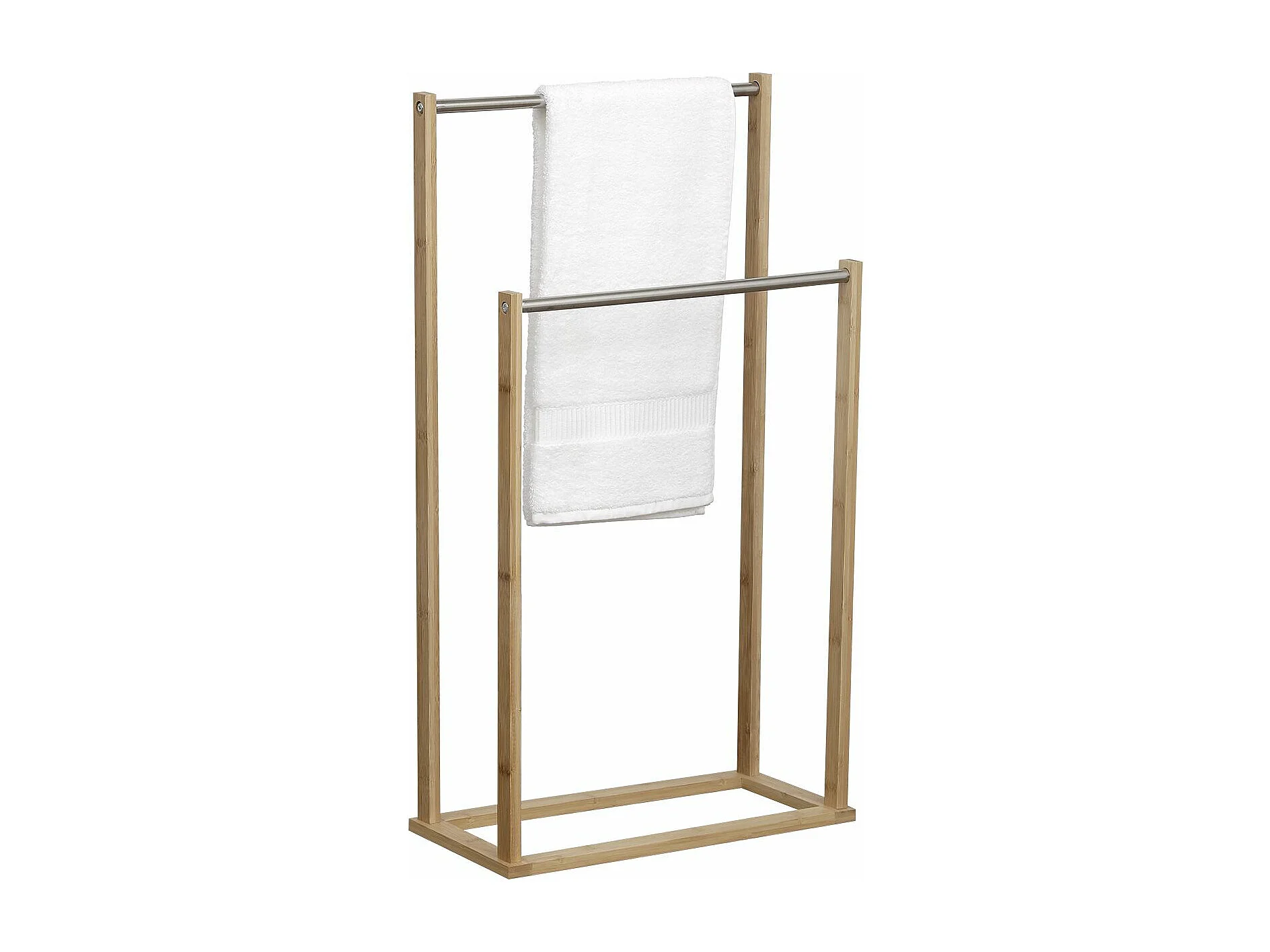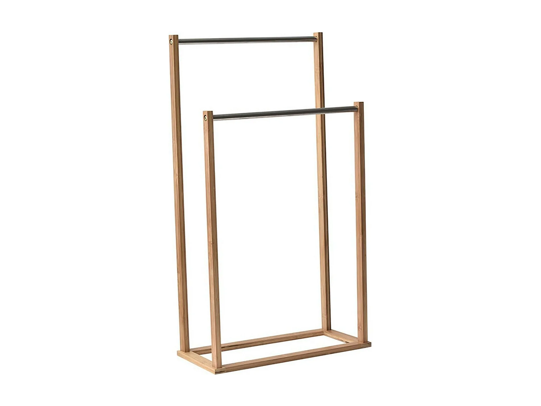 Porte-serviettes 2 Barres en Métal et Bambou H 82 cm