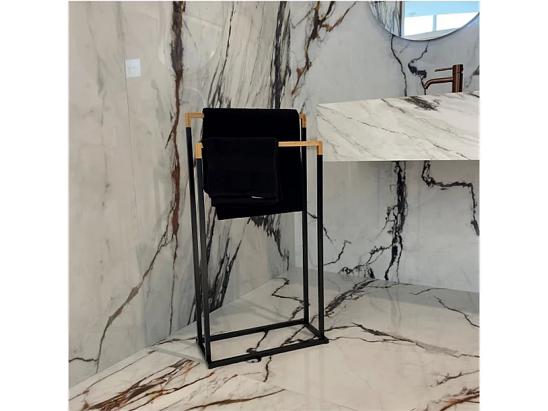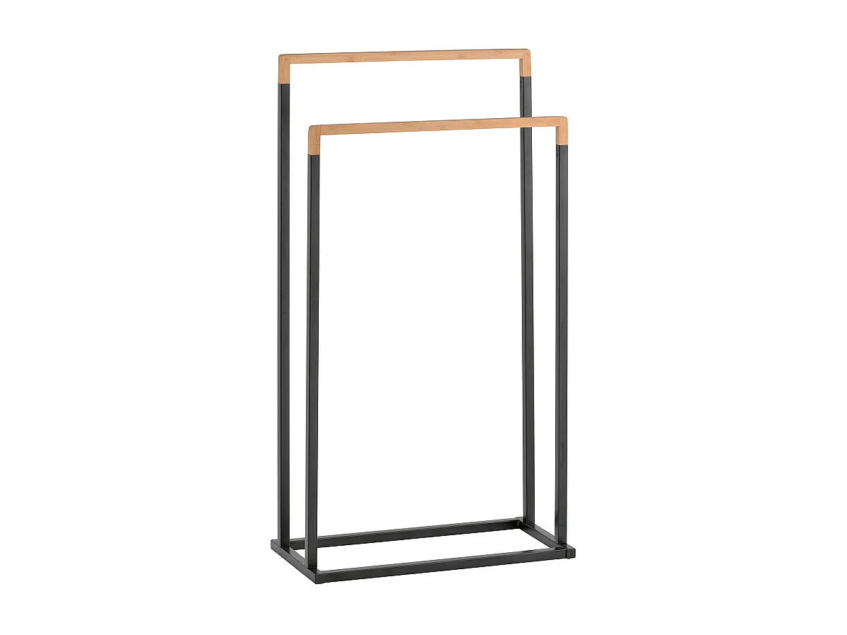 Porte-serviettes 2 Barres en Bambou et Métal Noir H 82 cm