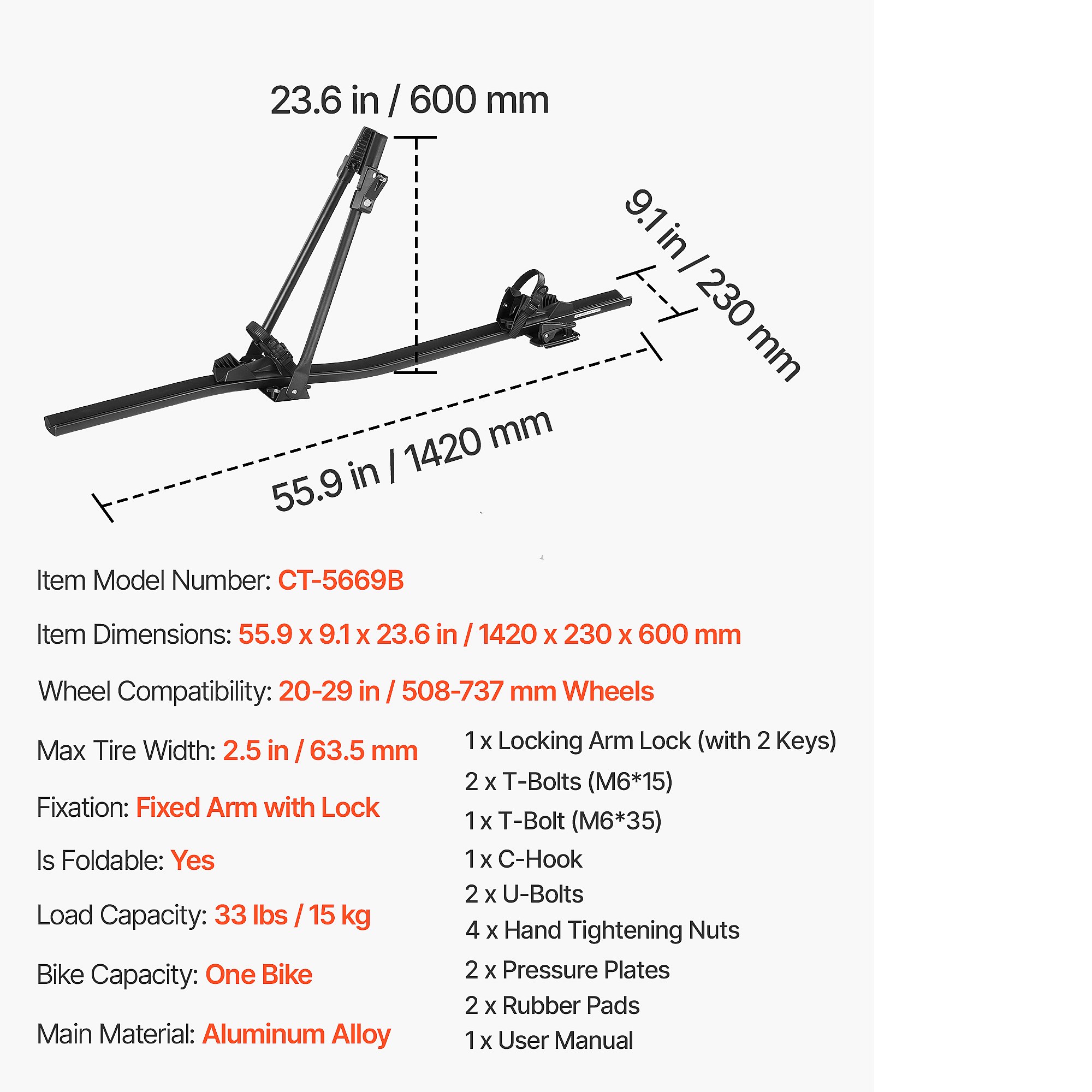 Porte-Vélos SucceBuy de Toit en Aluminium, Capacité de Charge 15 kg, Support pour 1 Vélo, avec Système de Verrouillage Sécurisé, Compatible avec la Plupart