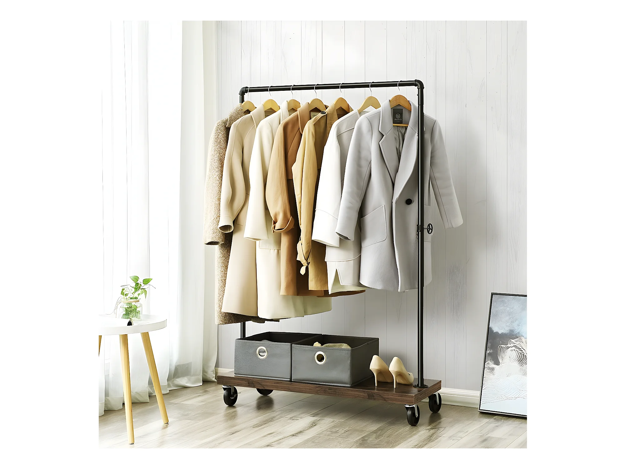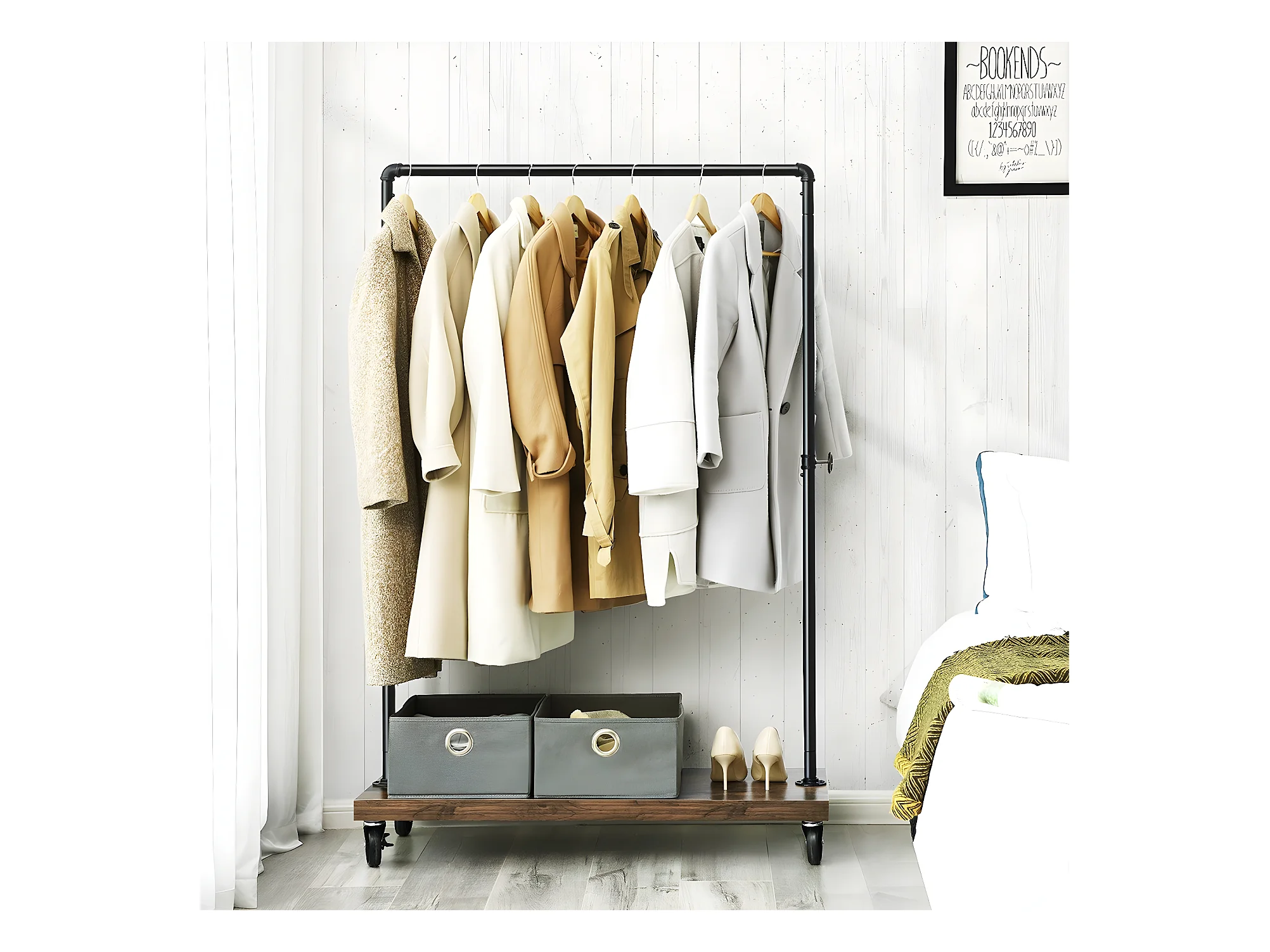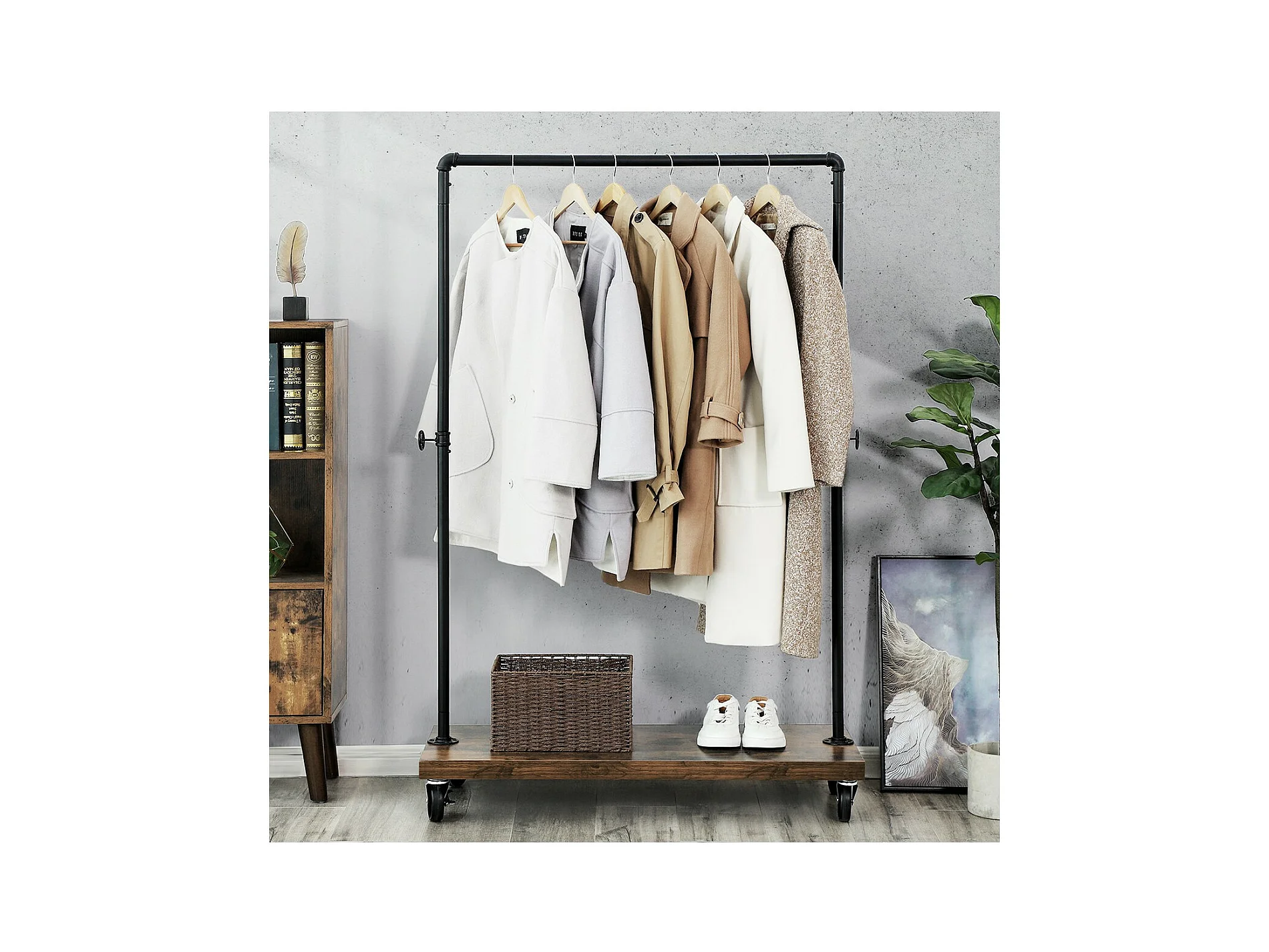 Porte-vêtements sur roues avec tuyaux industriels en métal noir - H162 cm