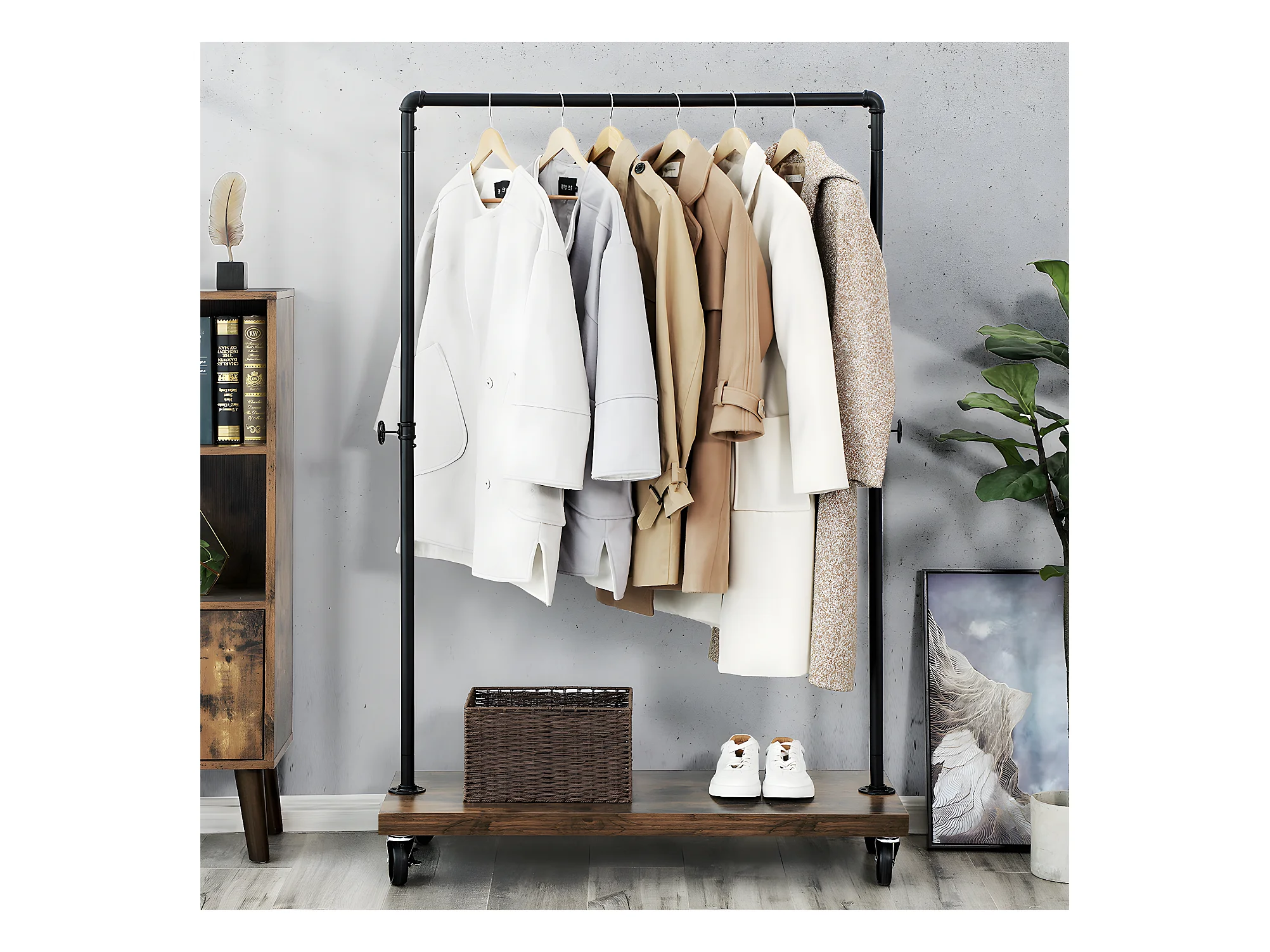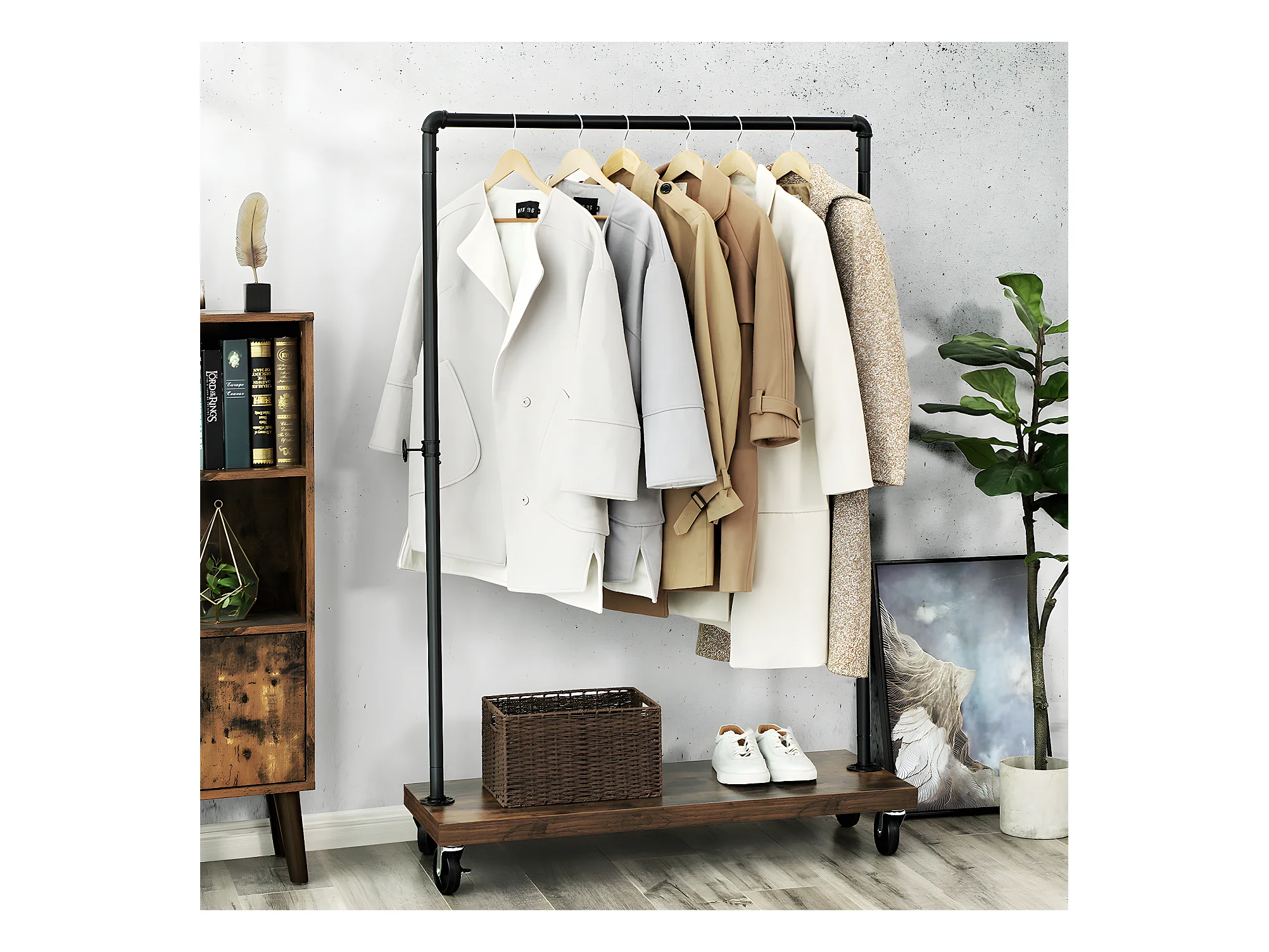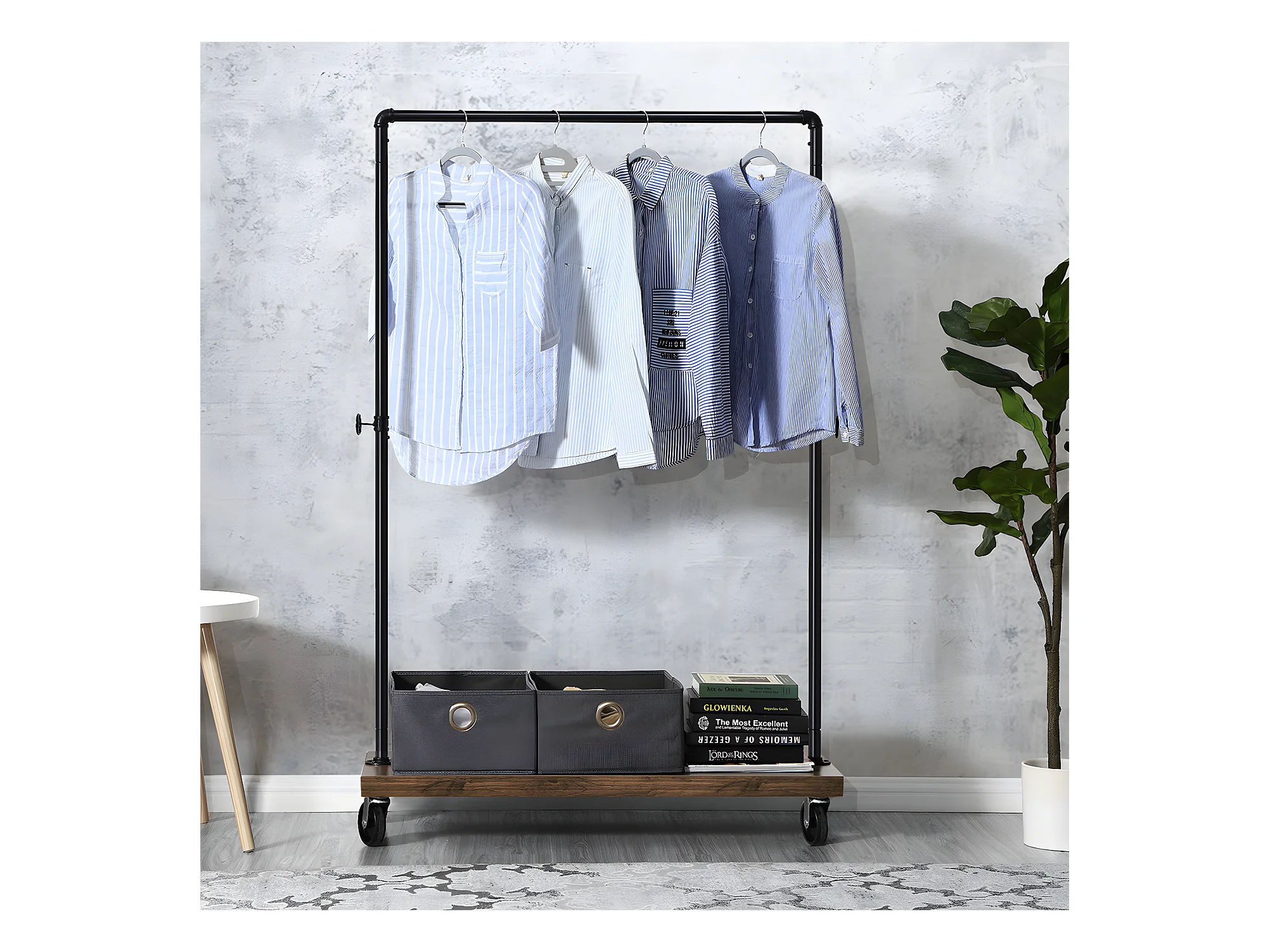 Porte-vêtements sur roues avec tuyaux industriels en métal noir - H162 cm