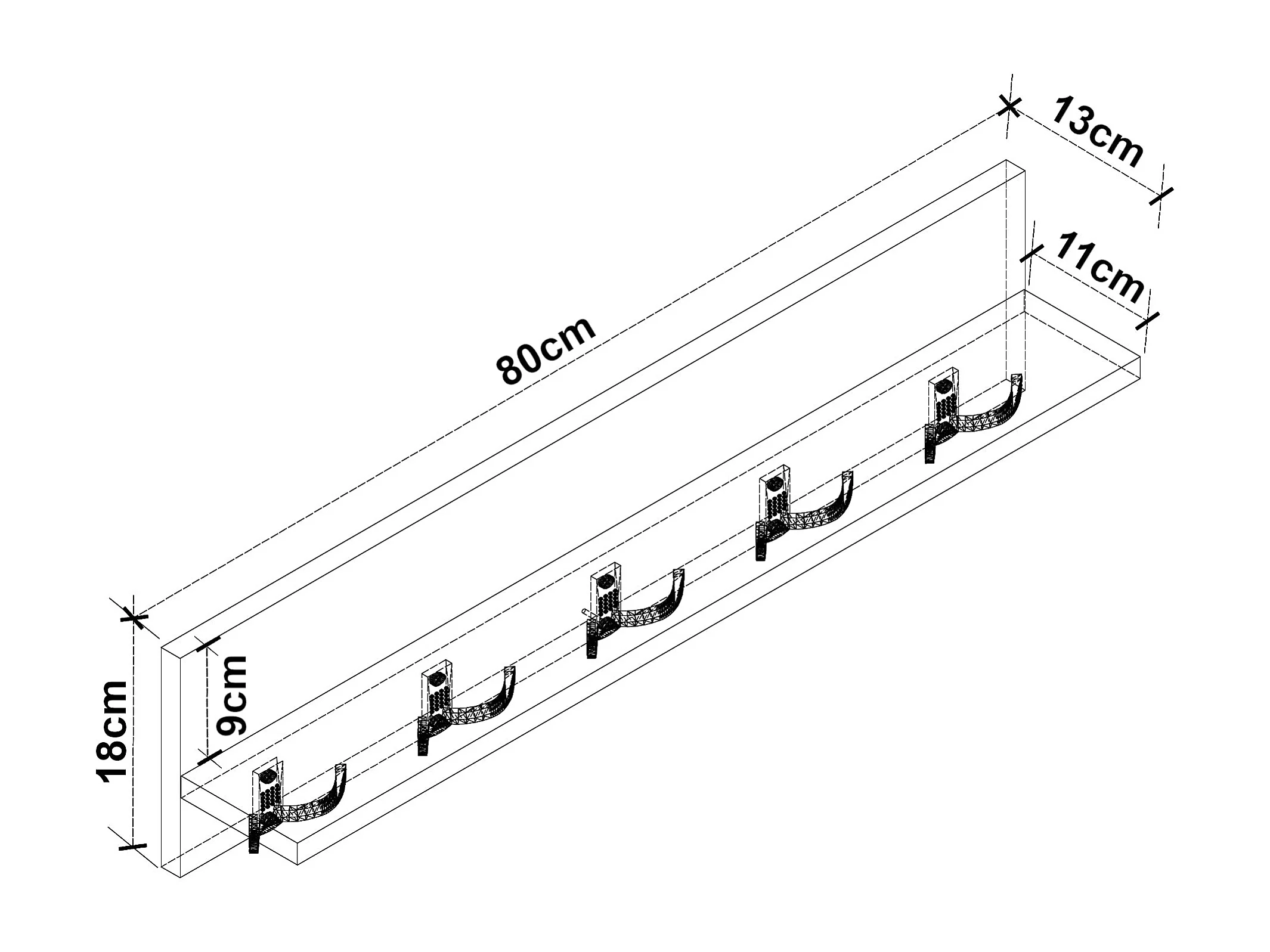 Portemanteau à 10 crochets 80 x 13 x 18 cm 03_0008167