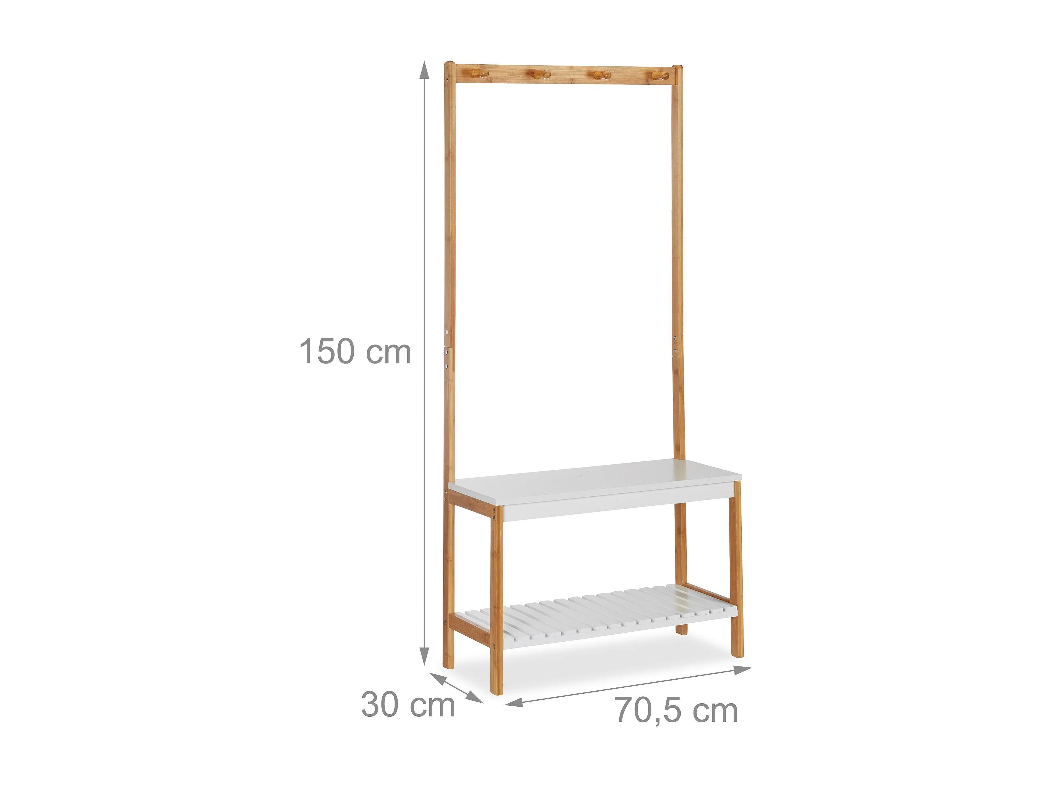 Portemanteau étagère avec banc bois blanche 70.5 x 30 x 150 cm 13_0002296