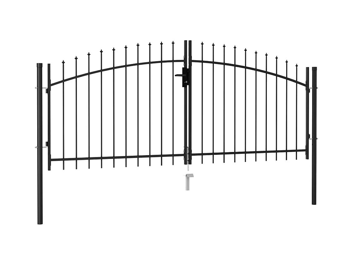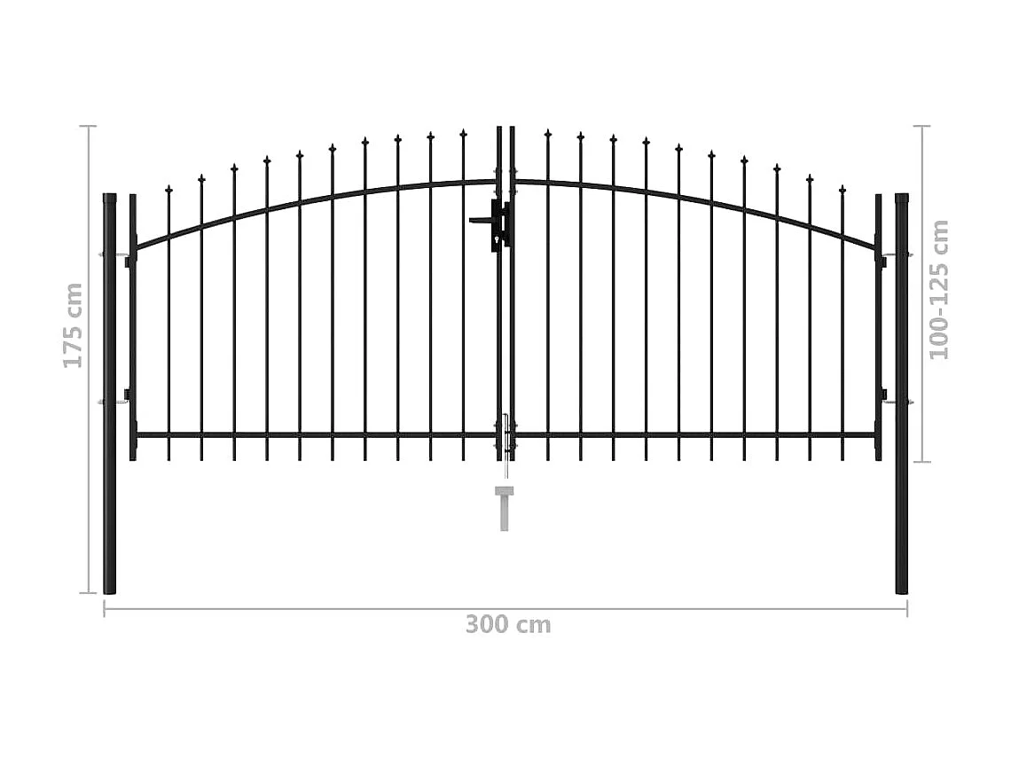 Portillon double porte avec dessus à pointe Acier 3x1,25 m Noir