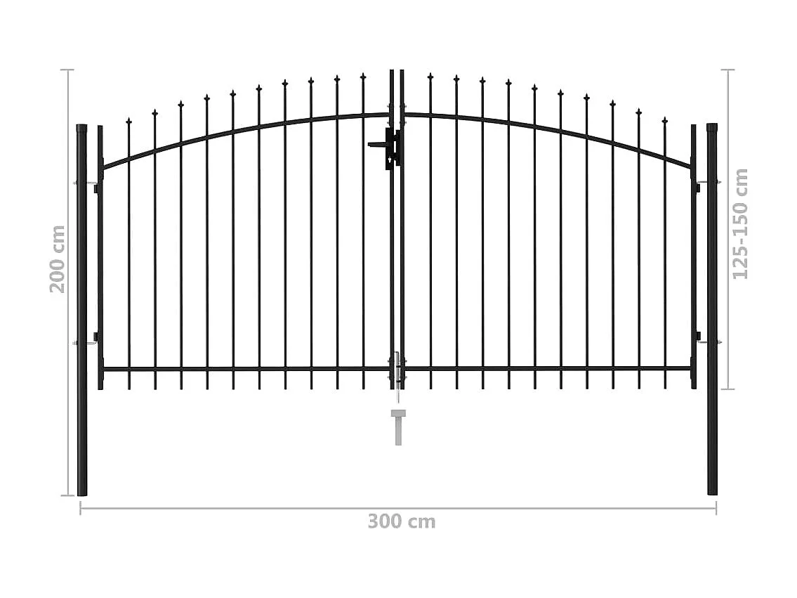 Portillon double porte avec dessus à pointe Acier 3x1,5 m Noir