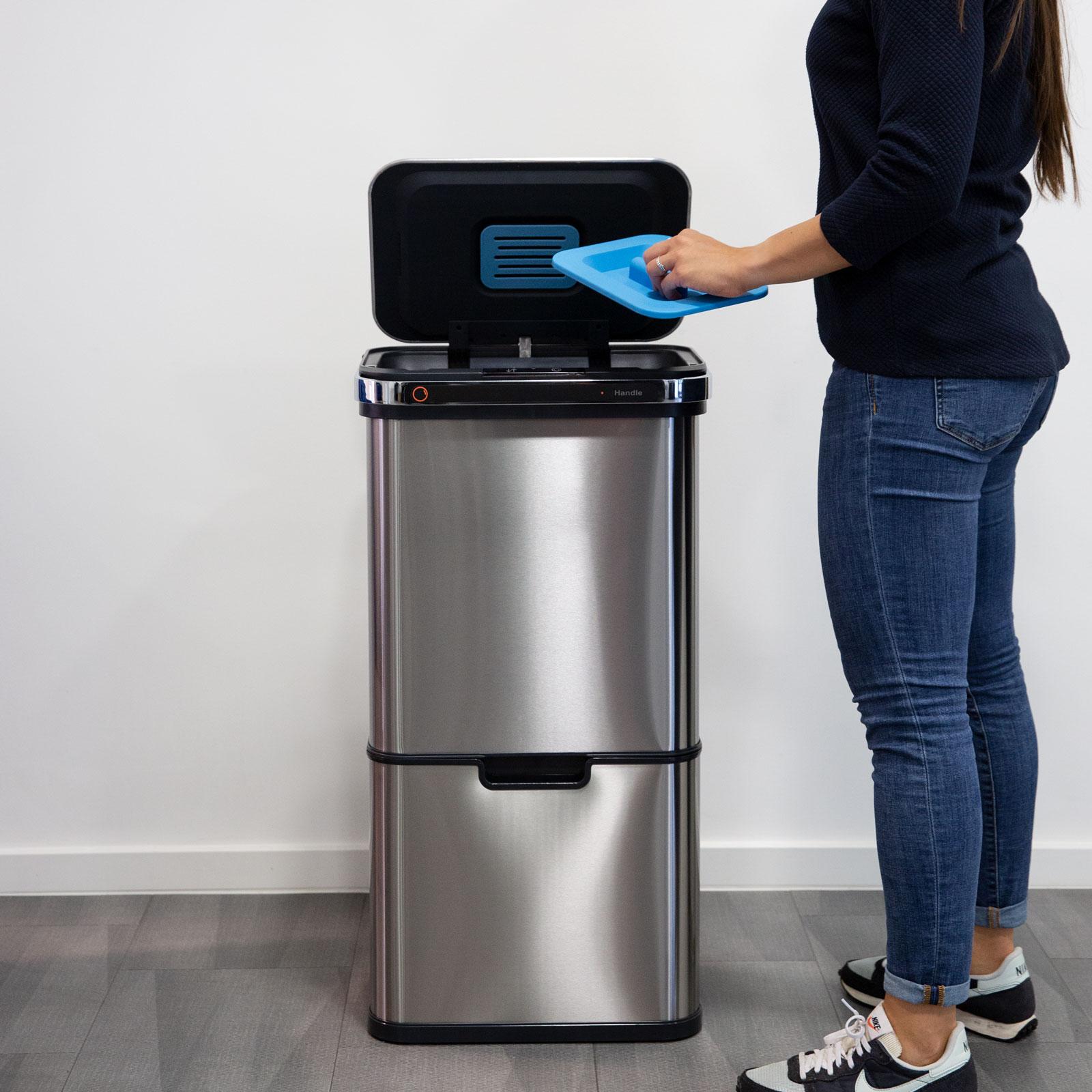 Poubelle à capteur 60L Fonction autonettoyante et filtre à charbon actif