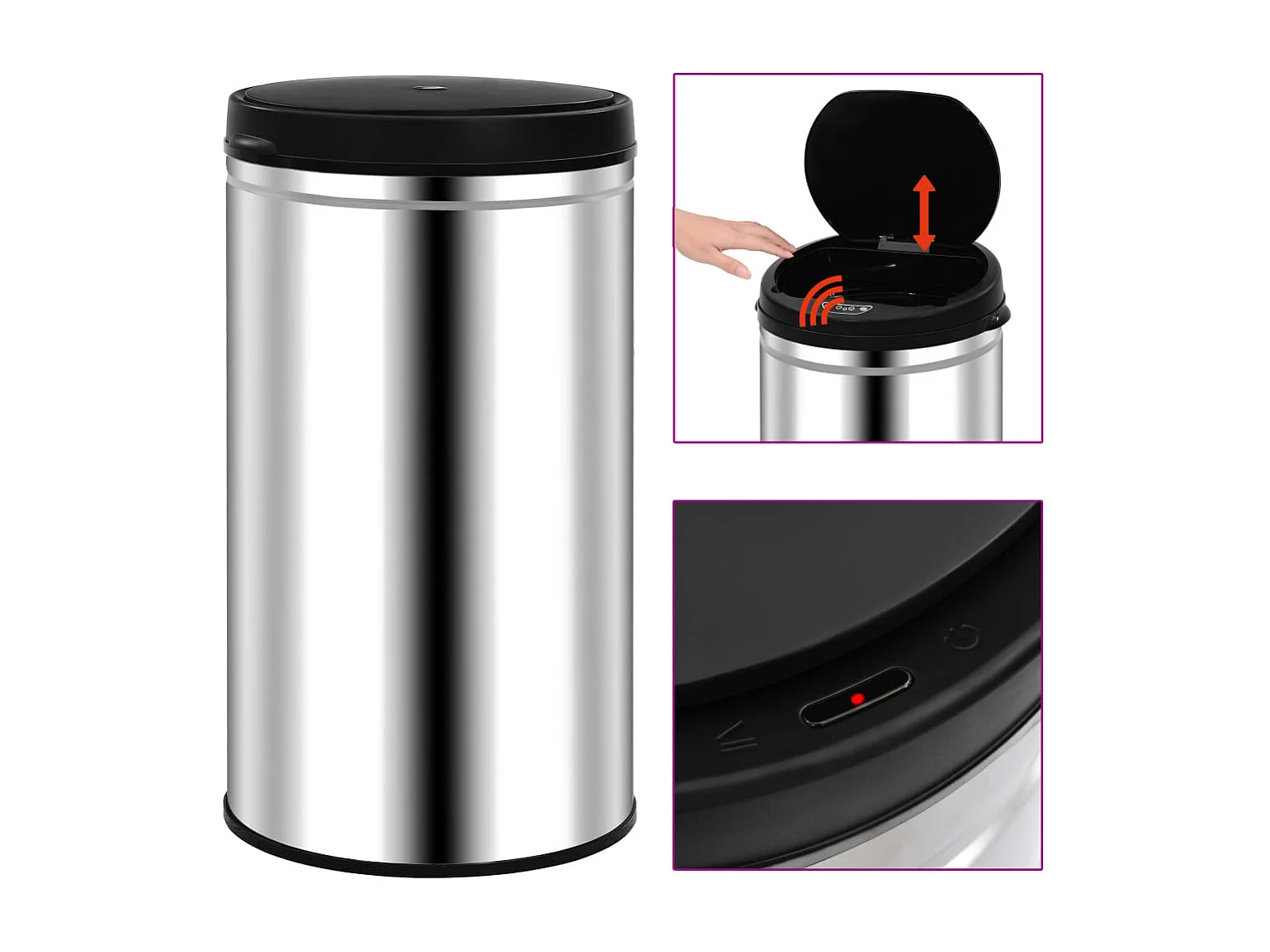 Poubelle à capteur automatique argenté 36 x 36 x 66 cm 02_0006113
