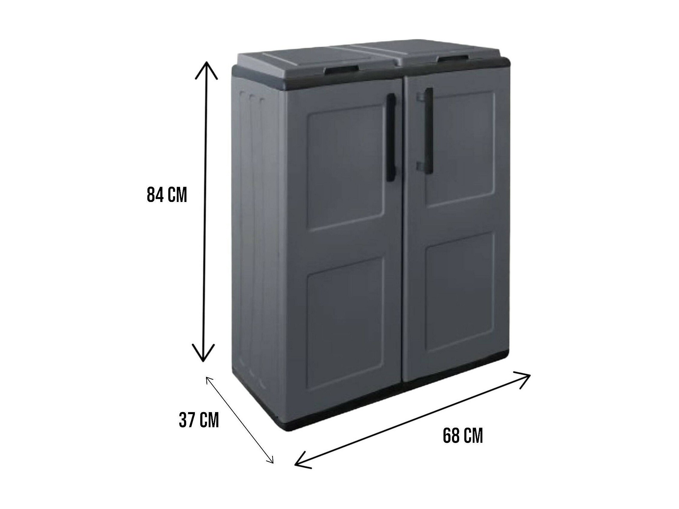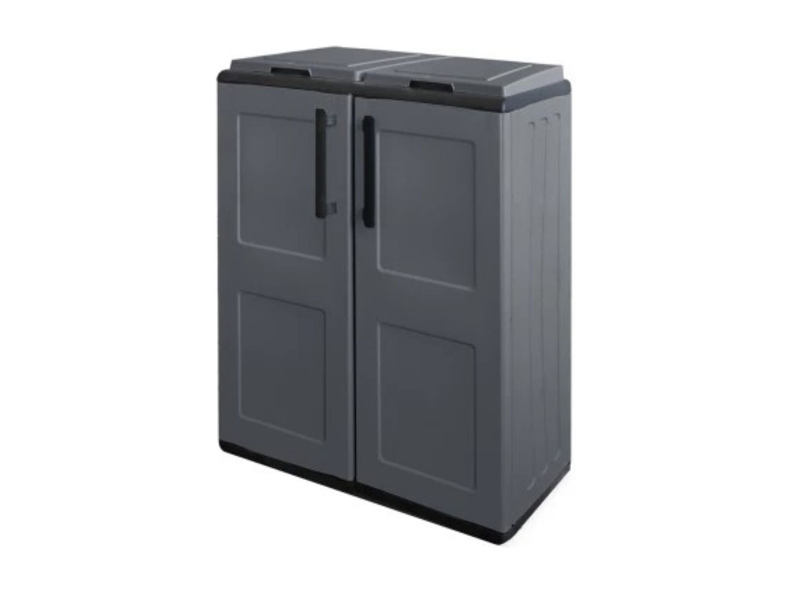 Poubelle Aarschot, poubelle, poubelle de recyclage 2 portes, 100% Made in Italy, 68x37h84 cm, Gris et Noir, finition carrée
