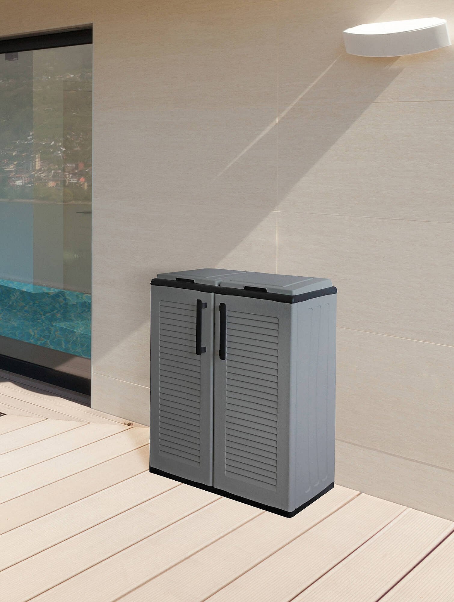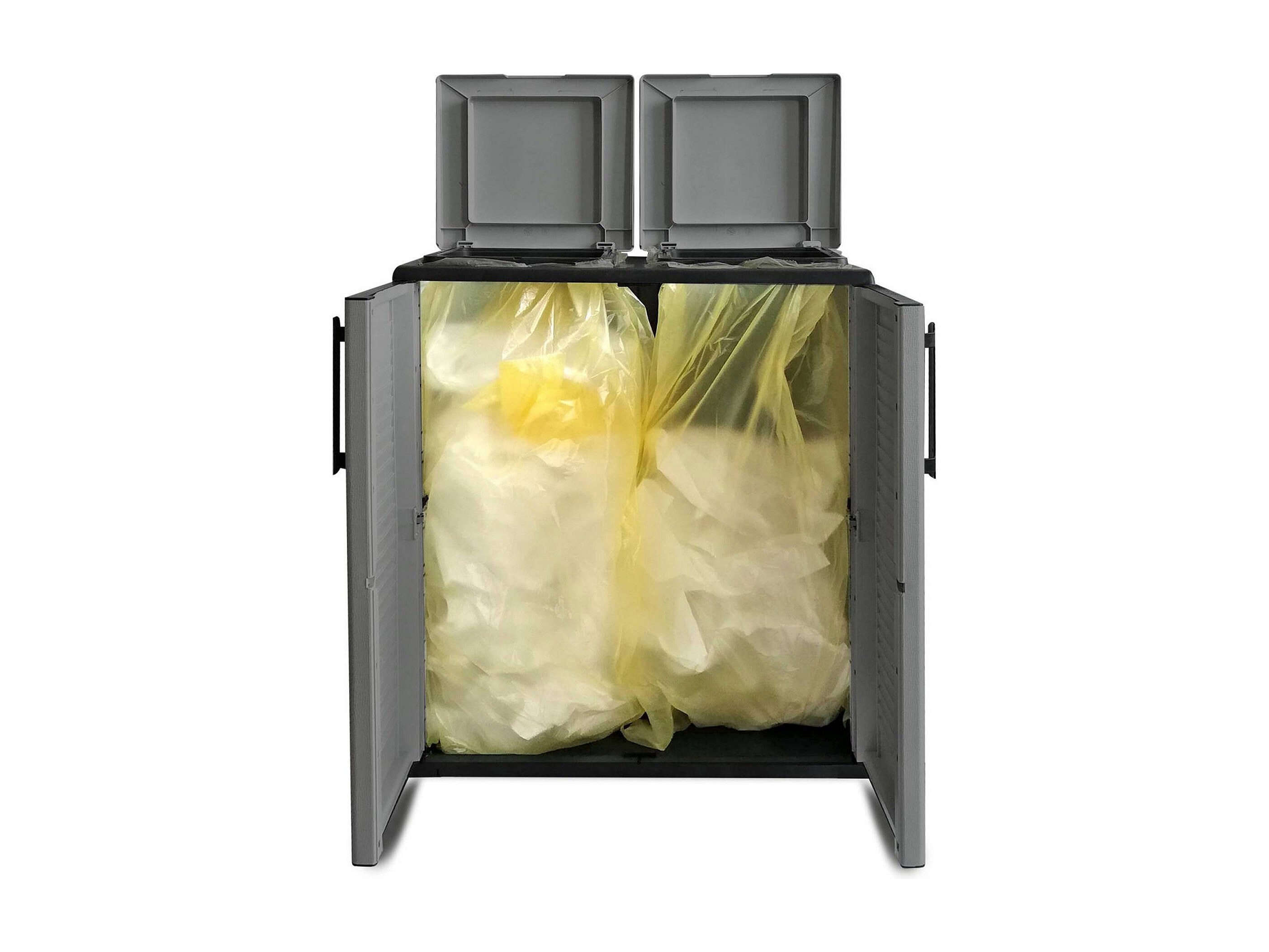 Poubelle Aarschot, poubelle, poubelle de recyclage 2 portes, 100% Made in Italy, 68x37h84 cm, Gris et Noir, finition rayée