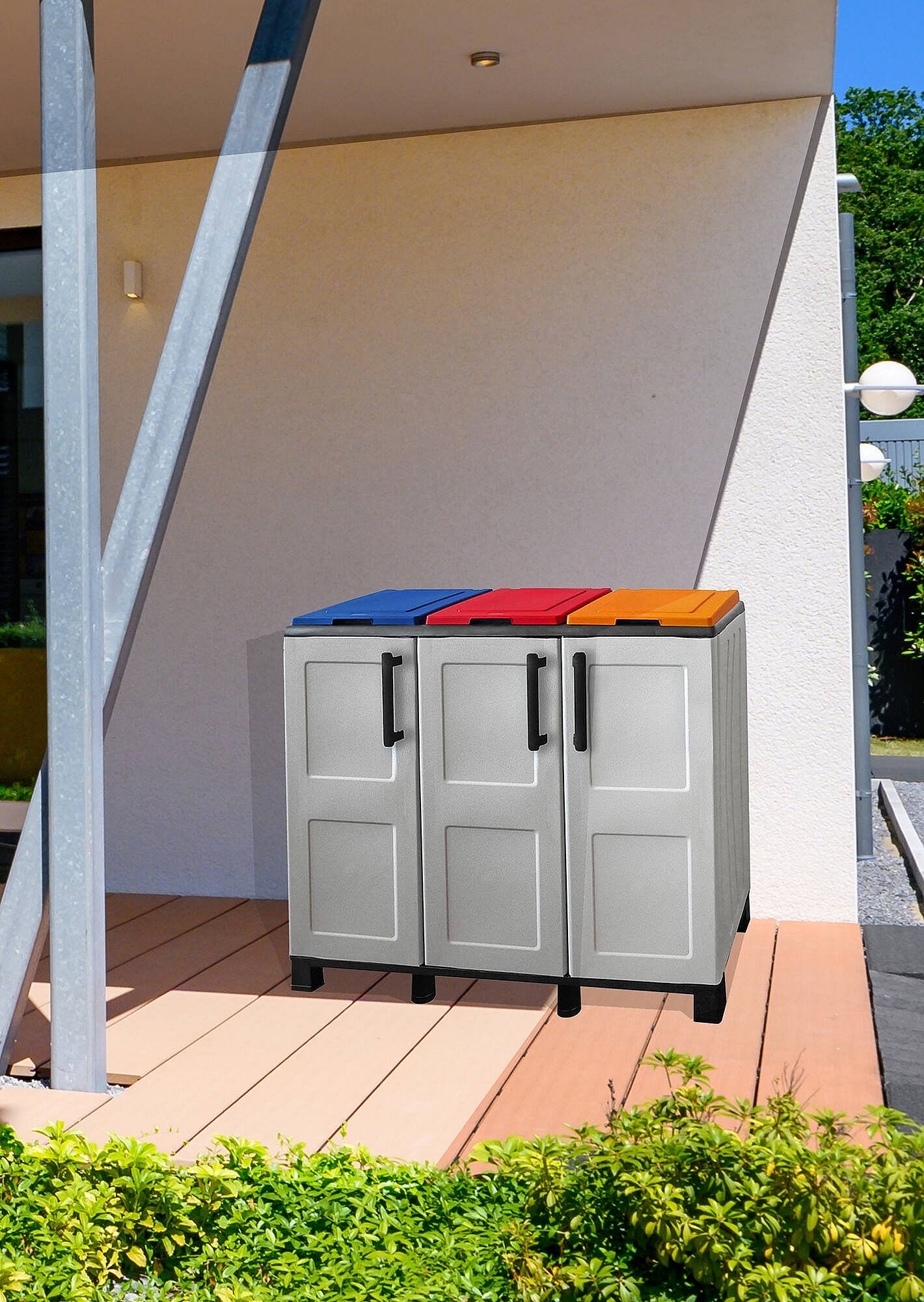 Poubelle Ciney, poubelle, poubelle de recyclage, 100% Made in Italy, 3 portes, 102x37h90 cm, gris clair et multicolore