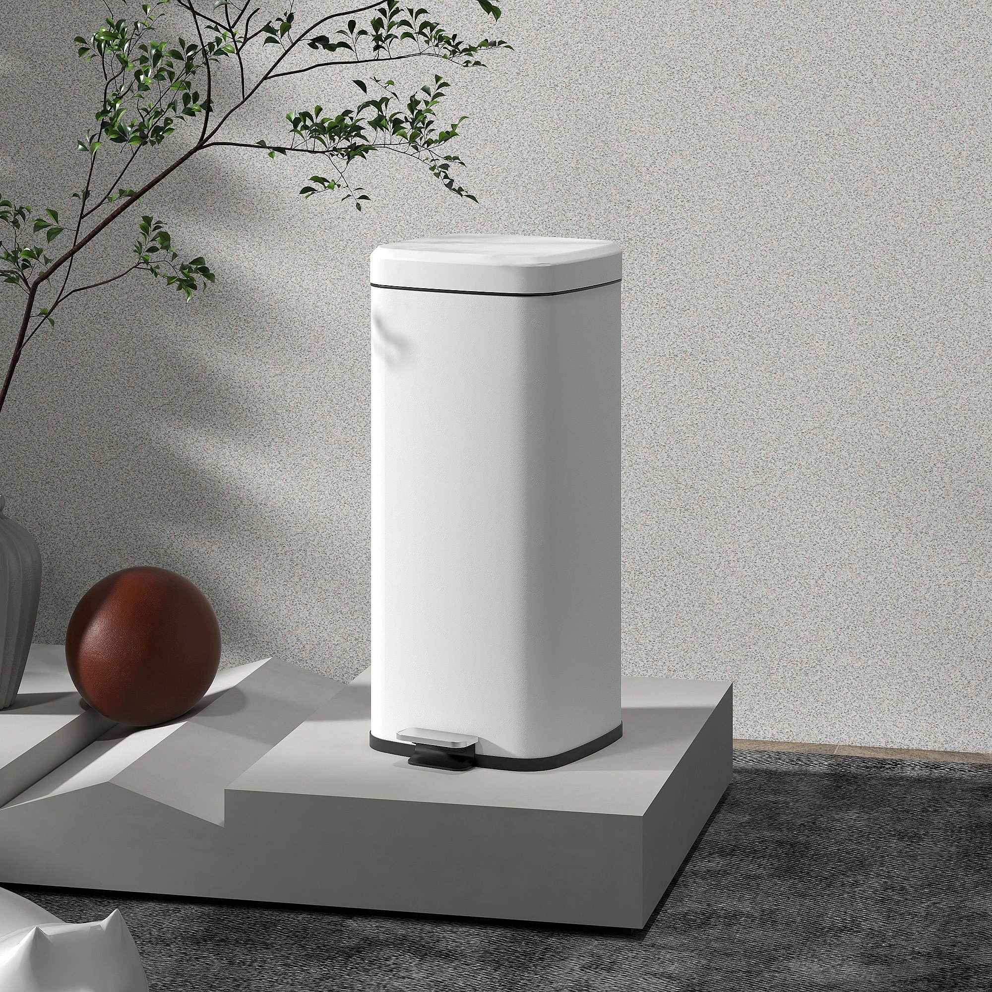 Poubelle de cuisine 20L poubelle à pédale en acier inoxydable avec couvercle à fermeture douce, compacte, seau intérieur amovible, 28L x 35l x 45H cm, blanc