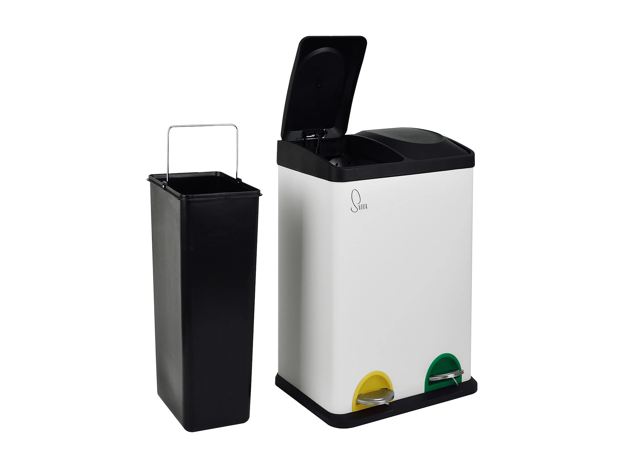 Poubelle à double pédale 60 L ECOSORT Métal Blanc