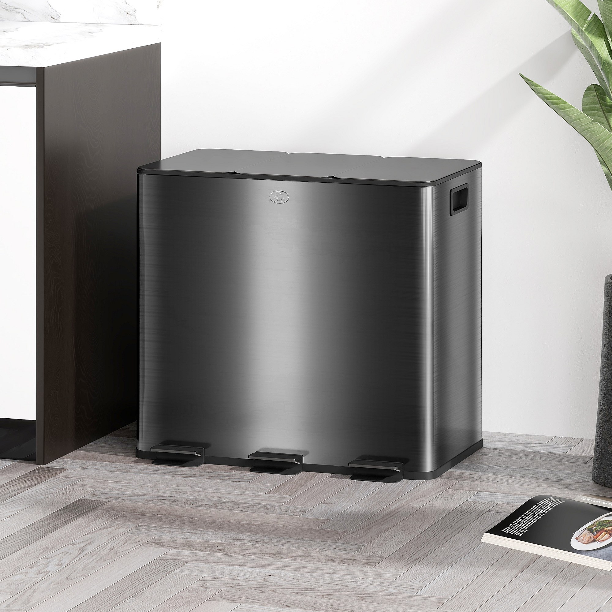 Poubelle manuelle tri selectif 3 bacs capacité totale 45L acier inox. brossé