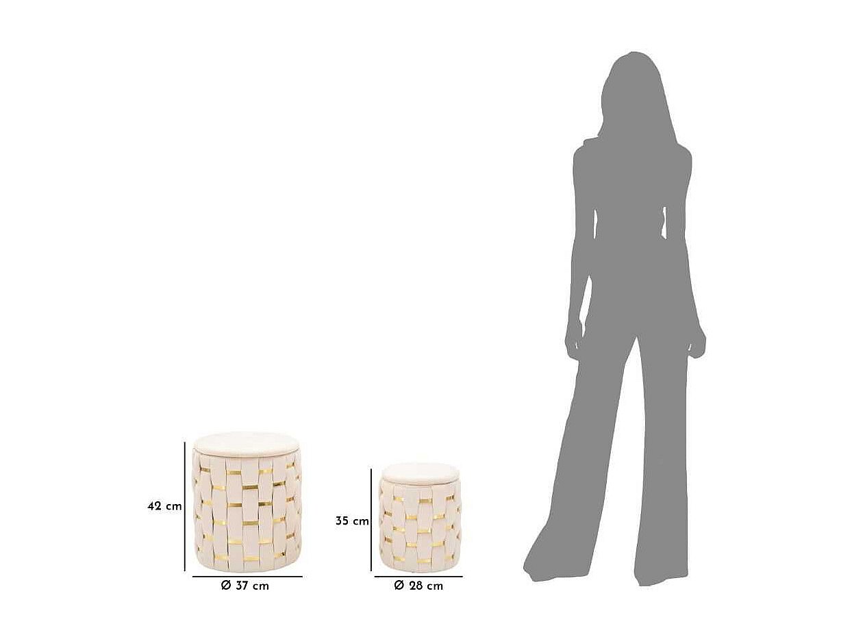 Lot de 2 Poufs MF868, Beige, 37x37x42 cm, Epikasa