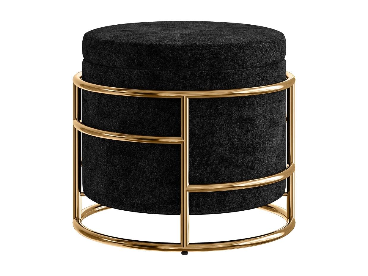 Pouf avec rangement, tissu velours, pieds en métal doré, noir (Ø42x39 cm)
