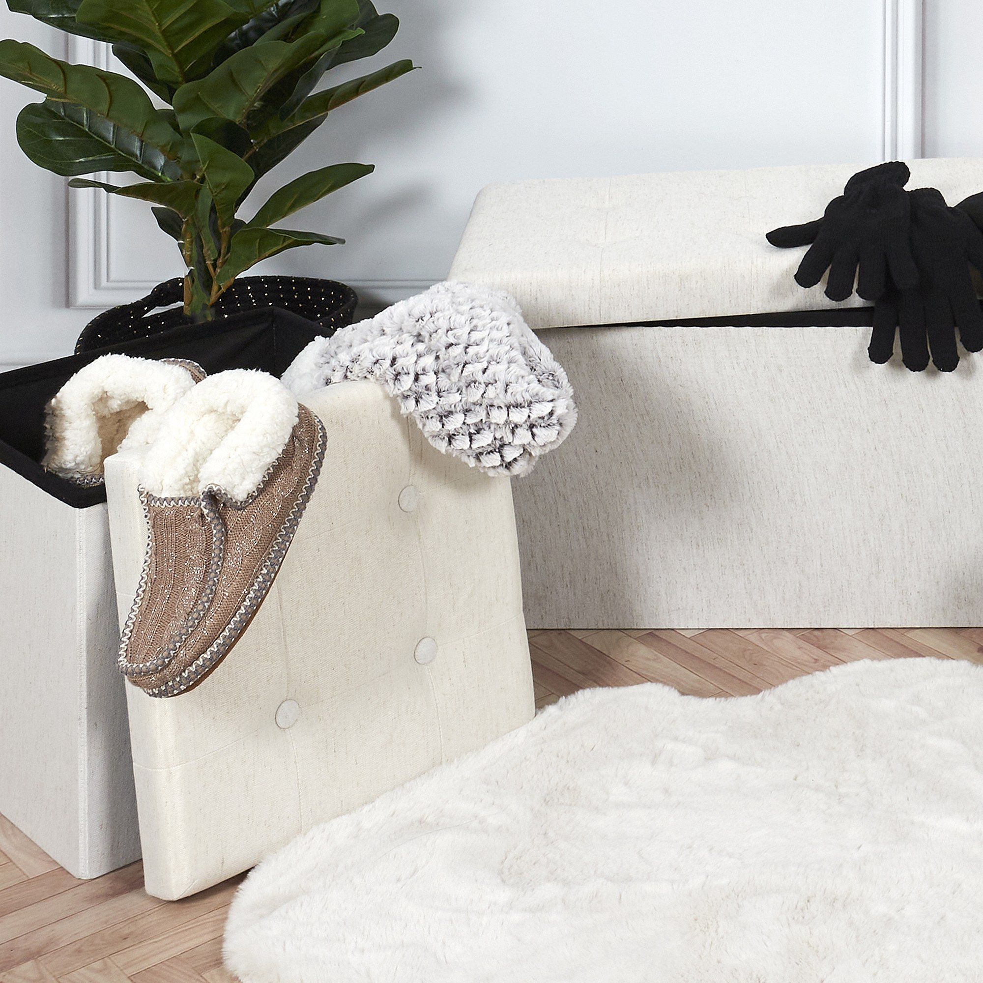 Coffre Pouf Pliable Tissu Beige