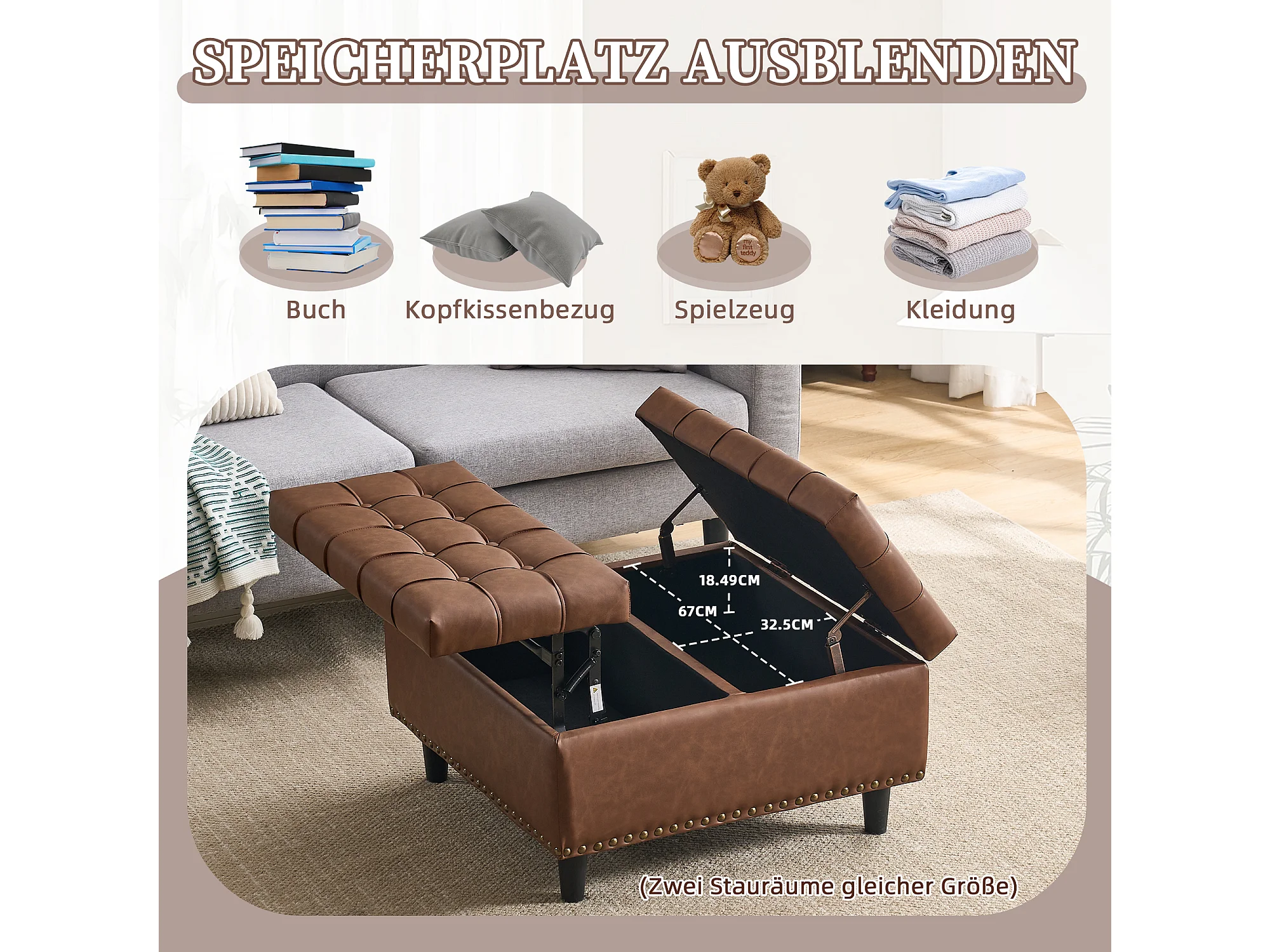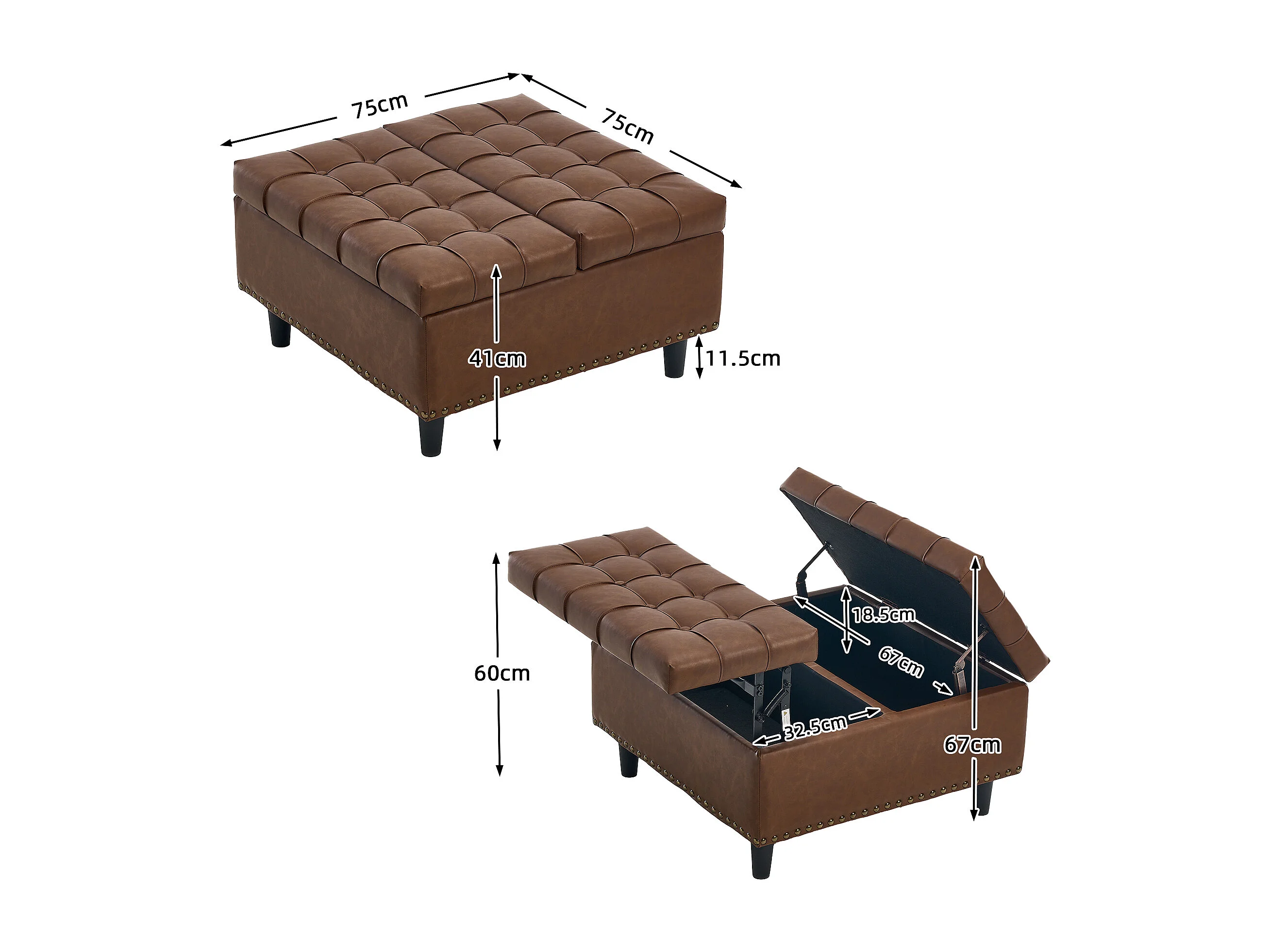 Pouf coffre en simili-cuir marron - Repose-pieds – mousse haute résilience - idéal pour le salon ou l’entrée