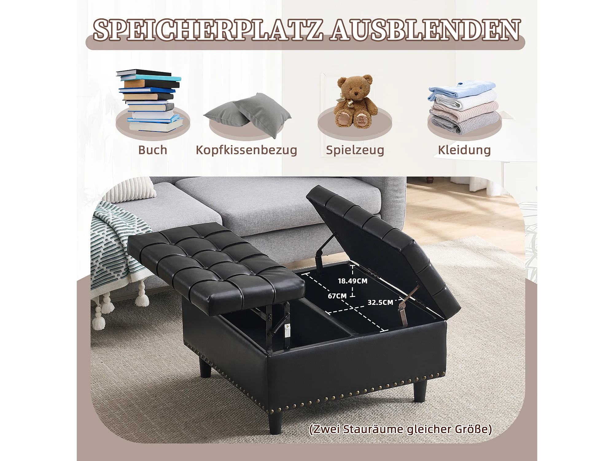 Pouf coffre en simili-cuir noir - Repose-pieds – mousse haute résilience - idéal pour le salon ou l’entrée