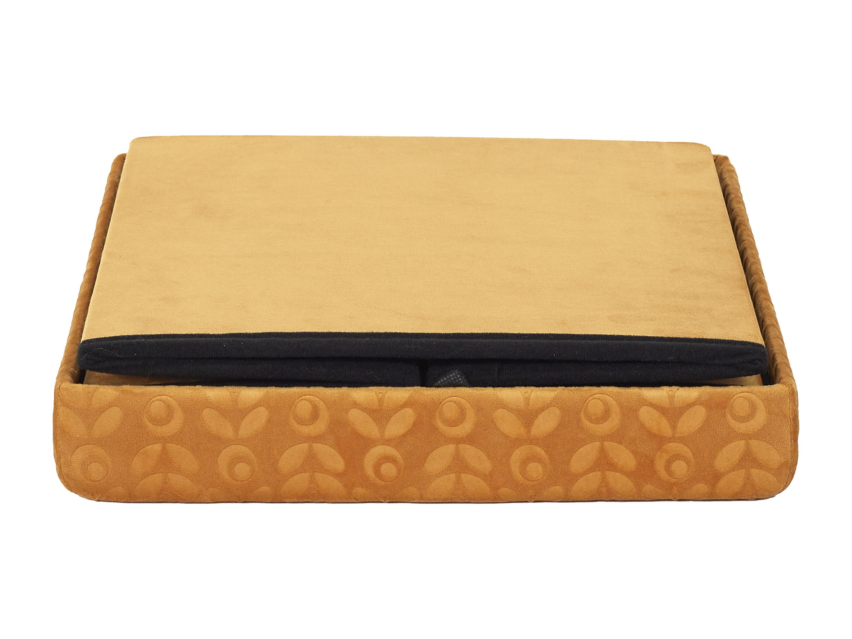 Pouf pliable coloris Ocre en velours - L. 76 x l. 38 x H. 38 cm