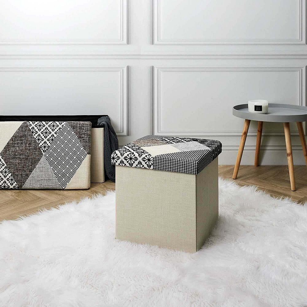 Coffre Pouf Pliable Tissu Gris Clair Gris