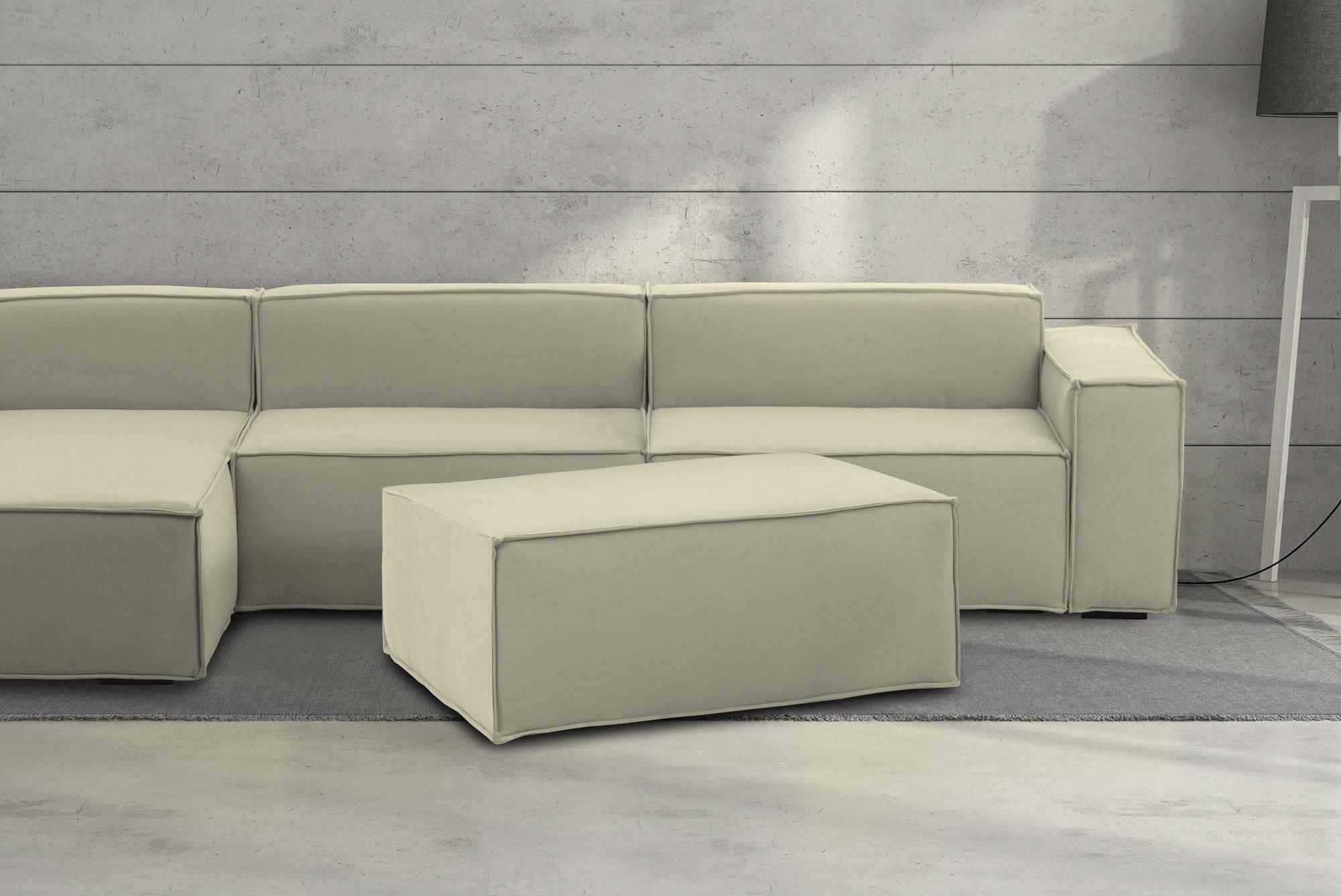 Pouf Dabdella, Pouf de salon, Fauteuil relaxant en tissu rembourré, 100% Made in Italy, 100x70h43 cm, Beige