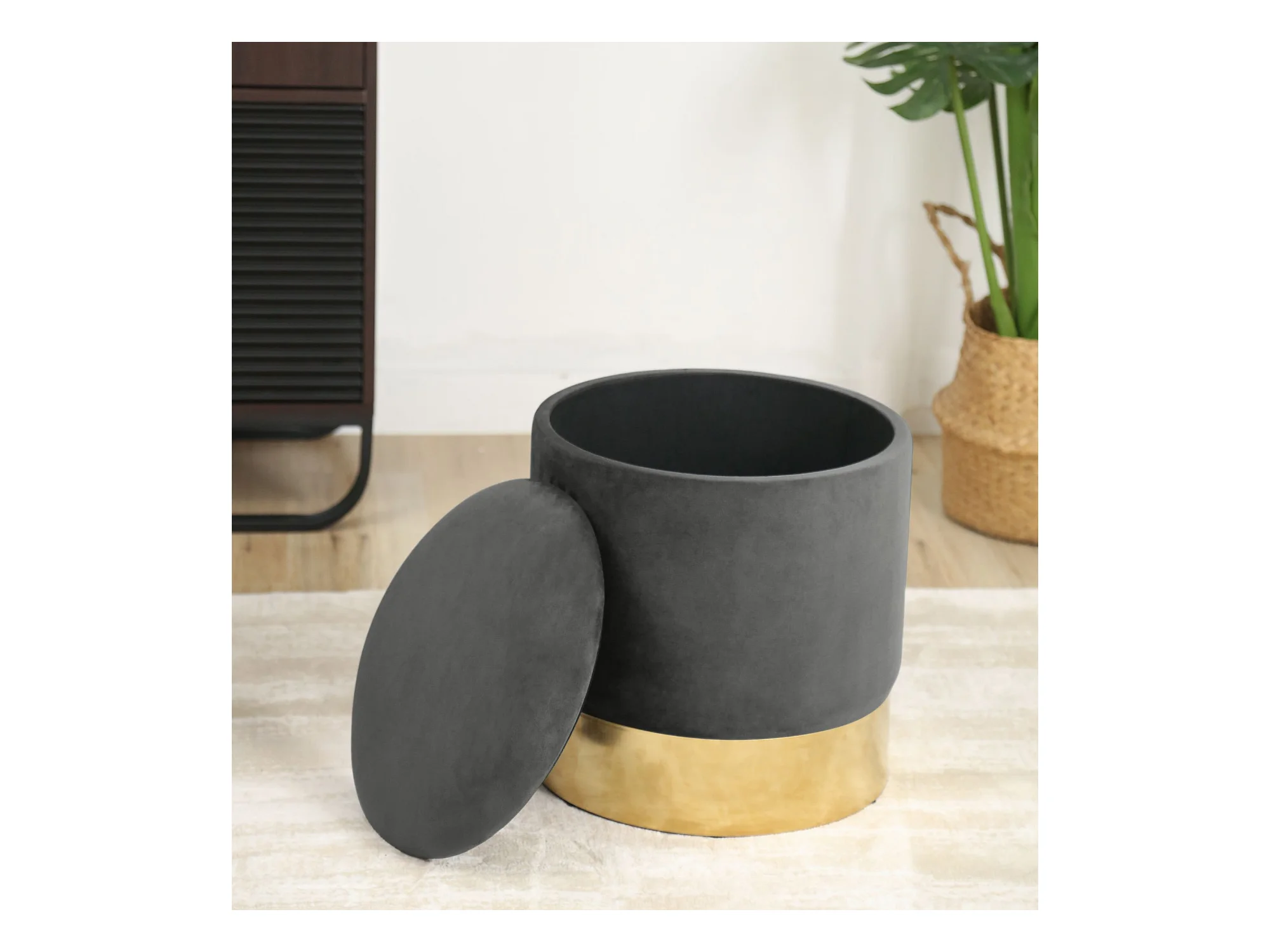 Pouf de Rangement avec Couvercle AKORD GOLDEN velour colour Gris Graphite hauteur 40 cm