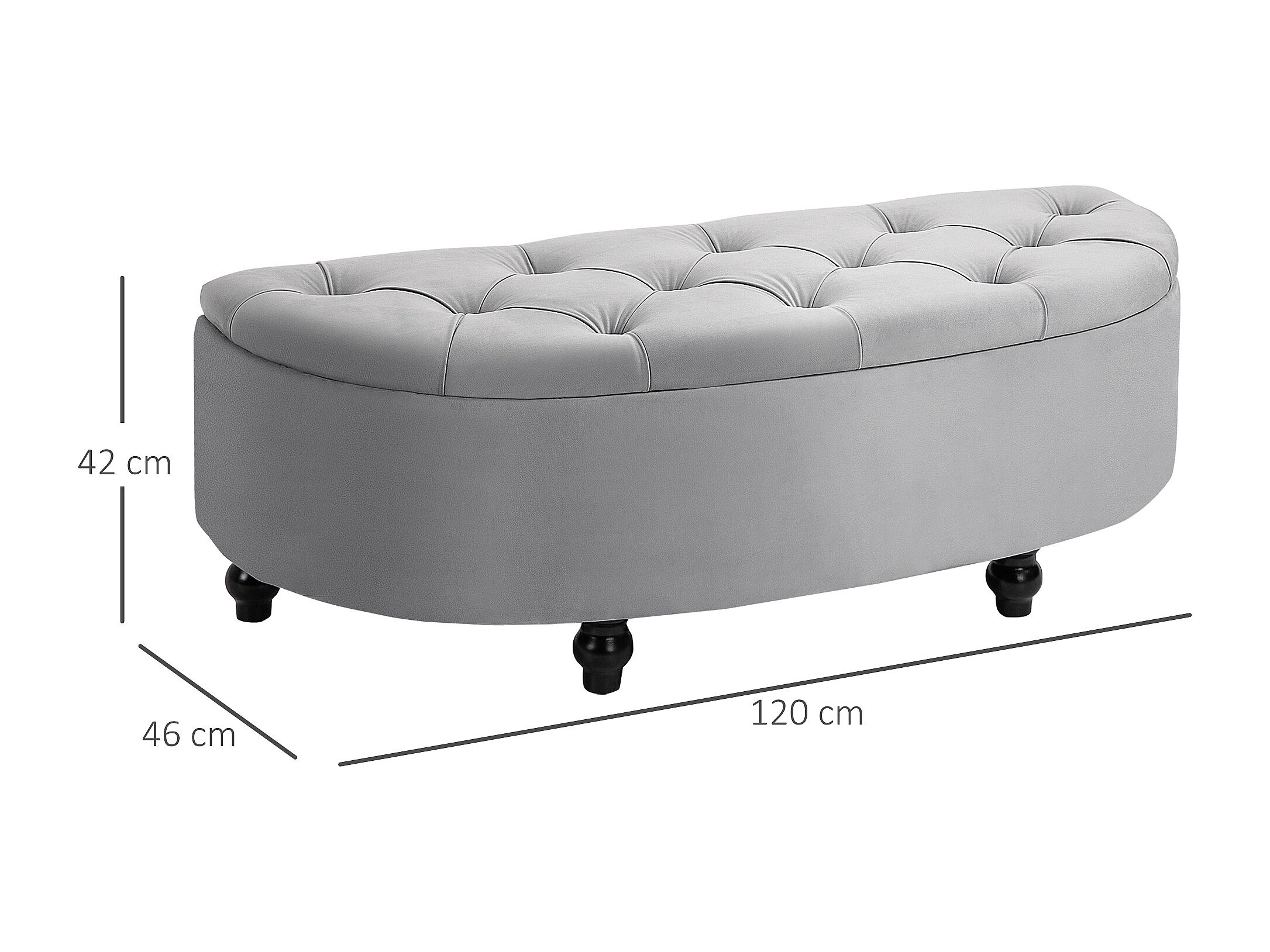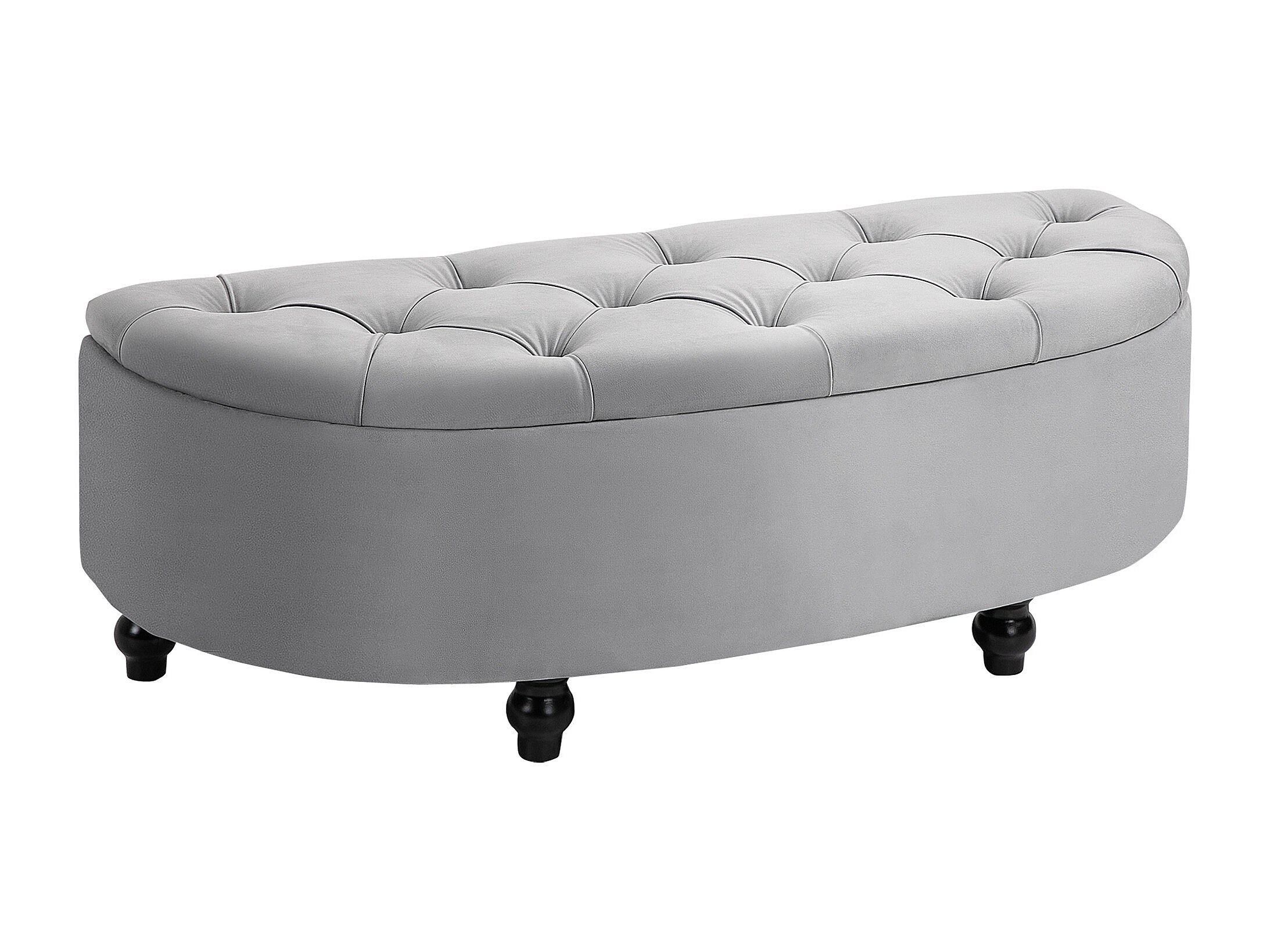 Pouf de rangement coffre 2 en 1 - pouf design classique chic capitonné demi-cercle - pieds bois hévéa noir revêtement velours gris